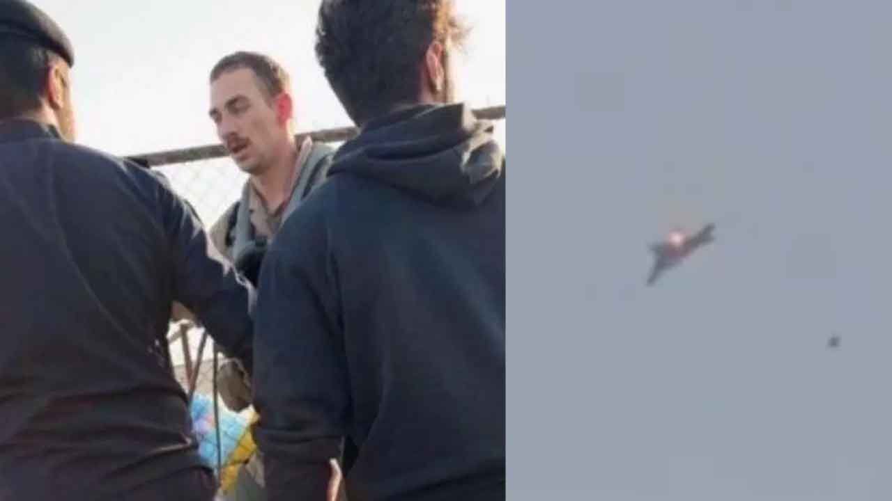 Görüntüler sosyal medyada hızla yayılırken, savaş pilotunun fırlatma koltuğunu kullanarak hayatta kaldığı görüldü.