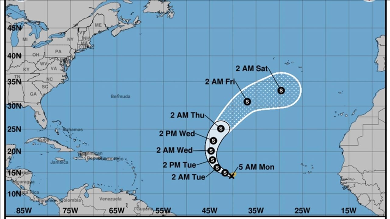 ABD Ulusal Kasırga Merkezinden yapılan açıklamada, tropik fırtınanın, Atlas Okyanusu'nda Cabo Verde'nin yaklaşık 1762 kilometre batısında bulunduğu ve rüzgar hızının saatte 72 kilometreye çıktığı belirtildi.