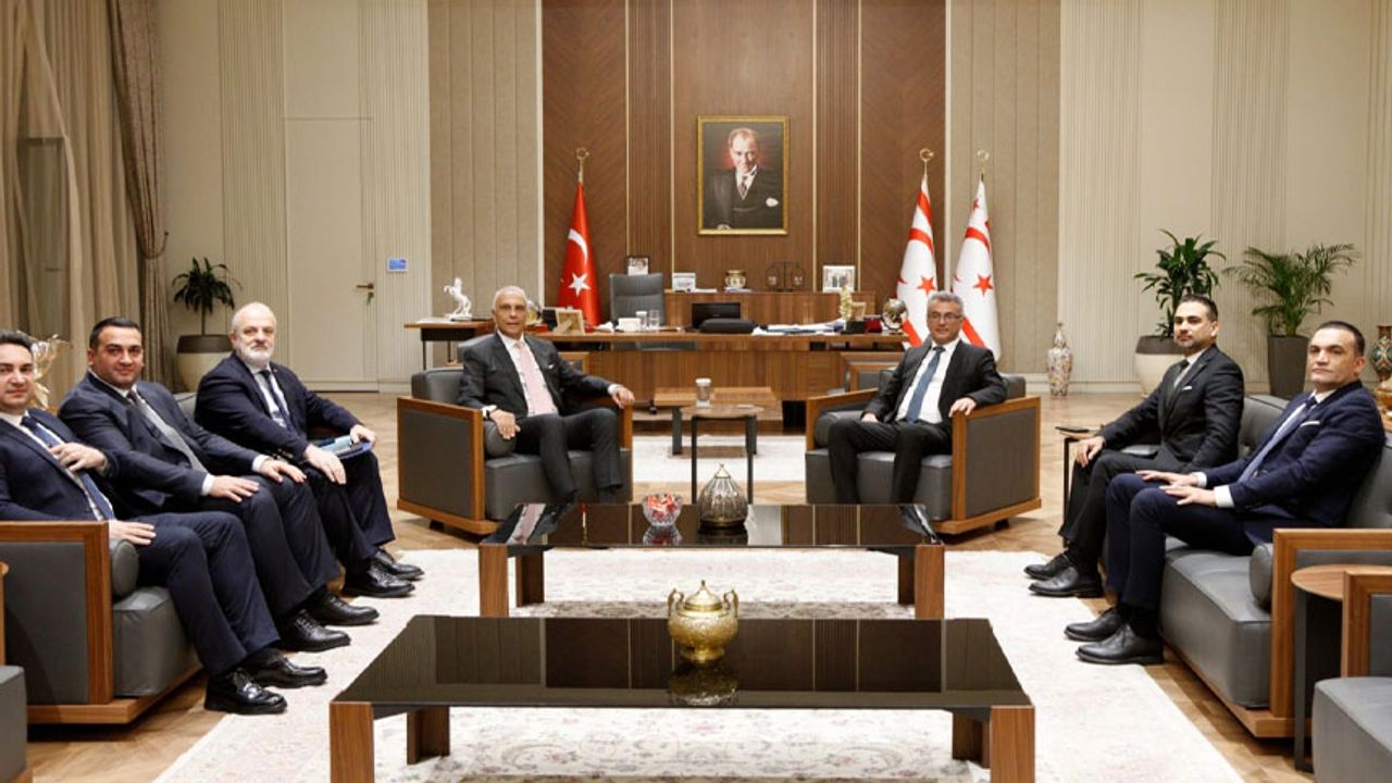 Cumhurbaşkanı Tufan Erhürman, Tüm Bürokratlar ve İş İnsanları Sosyal Yardımlaşma Derneği (TÜMBİAD) Başkan Yardımcısı Ömer El, Uluslararası Sosyal Kültürel ve Akademik İlişkiler Derneği (USKAİD) Genel Başkanı Av Selman Yaray, Rizeli Bürokratlar, Yöneticiler ve İş İnsanları Sosyal Dayanışma Derneği (RİBİAD) Genel Sekreteri Arif Ekşi, Tüm Bürokratlar ve İş İnsanları Konfederasyonu (TUMBİKON) Başkan Vekili Can Çobanoğlu’ndan oluşan bir heyeti kabul etti.