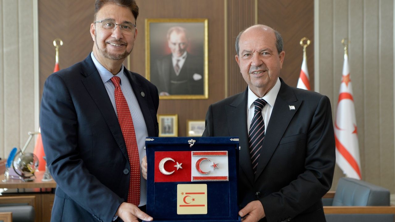 Cumhurbaşkanı Tatar, milletvekili Khan’a Kıbrıs sorunun çözümüne dair yaklaşımları hakkında bilgi vererek, Kıbrıs sorunun çözümünde iki devletli çözüm vizyonunun önemini vurguladı.