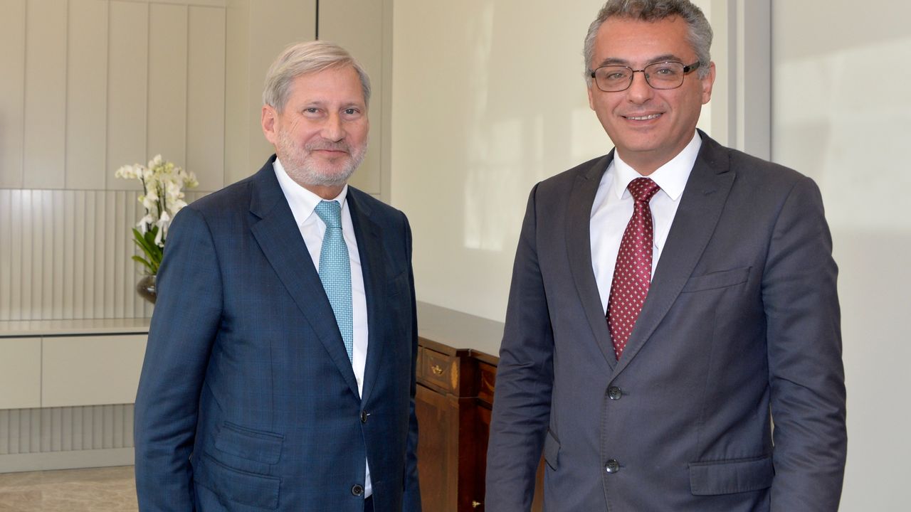 Johannes Hahn, Cumhurbaşkanlığı Müsteşarı Mehmet Dânâ tarafından karşılandı.