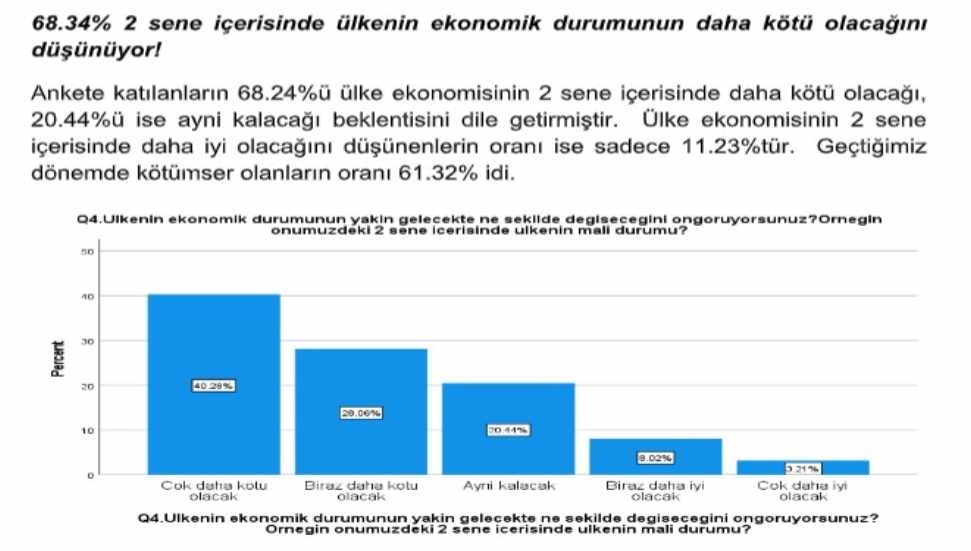 Araştırmaya katılanların %58.91’i, önümüzdeki iki yıl içerisinde kendi mali durumunun daha kötü olacağını ifade etti.