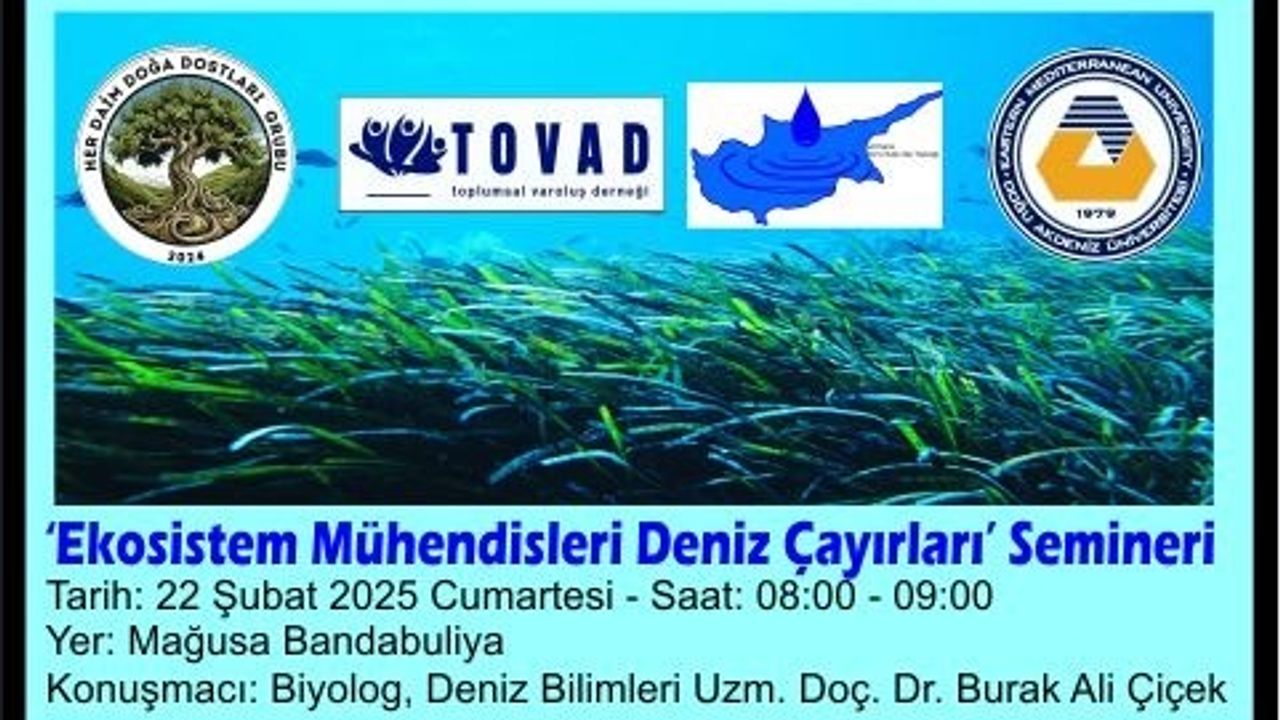 Doğu Akdeniz Üniversitesi, Kıbrıs Sulak Alan Topluluğu, Toplumsal Varoluş Derneği ve Her Daim Doğa Dostları tarafından "Ekosistem mühendisleri deniz çayırları" konusunda yarın saat 08.00-09.00 saatleri arasında bir seminer düzenleniyor.