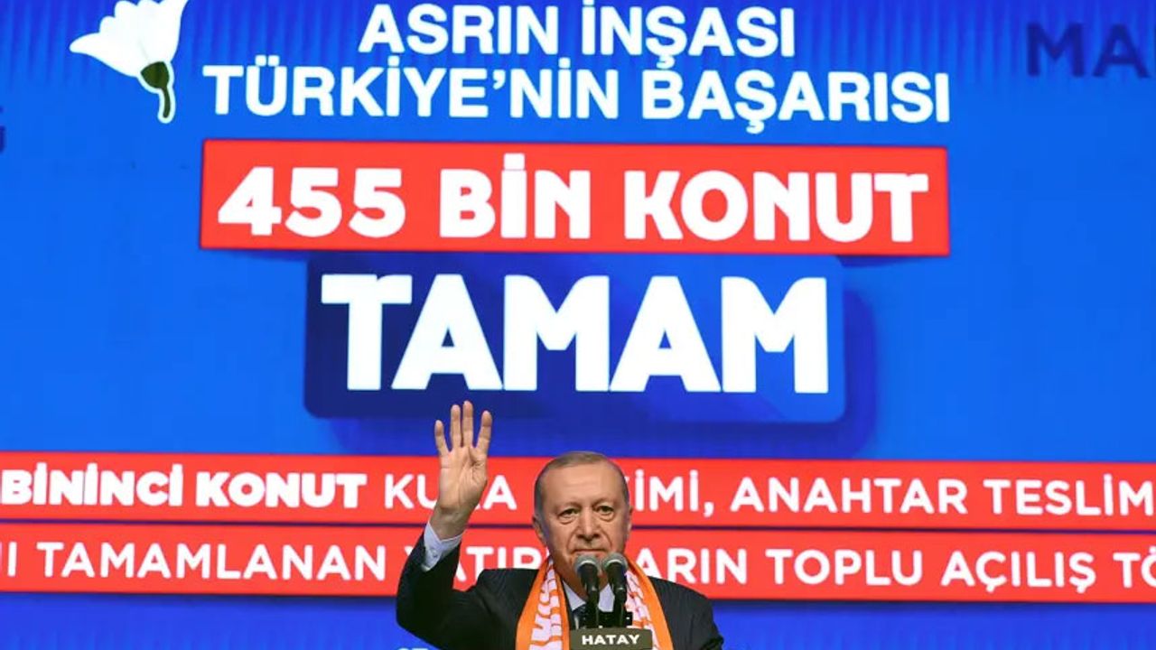 Cumhurbaşkanı Recep Tayyip Erdoğan, Hatay'da düzenlenen "455 Bininci Afet Konutu Kura Çekimi, Anahtar Teslimi ve Yapımı Tamamlanan Yatırımların Toplu Açılış Töreni"nde konuştu.