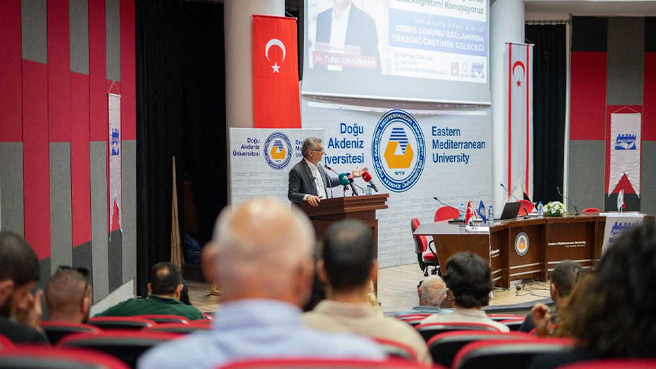 “Burada kendimi evimde hissediyorum” diyerek sözlerine başlayan Erhürman, söz konusu organizasyon için sendikaya teşekkür etti. Tufan Erhürman, “Yükseköğretim, diğer sorunlarımızla paralel ilerleyen sorunlara da sahiptir. Ben her zaman bir üniversite hocası olarak şunu gördüm: Ankara’da da, DAÜ’de de ders verirken durum aynıdır. Dünya ile iletişimini kurabilen bir konumda olabilmek gerekir. İnsanlar çocuklarını üniversiteye gönderecekse, öngörülebilir bir yapının olması, soru işaretlerinin bulunmaması ve güvenli bir ortamın sağlanması gerekir” dedi. Ankara Üniversitesi Hukuk Fakültesi’nde okurken, “Bir gün gelir de Ankara Üniversitesi’nin diplomasında sorun çıkar mı?” endişesini hiç yaşamadıklarını söyleyen Erhürman, “Türkiye’de siyasi sorunların yoğun olduğu dönemlerde bile orada nispeten güvende hissettiğimiz bir ortam vardı” diye konuştu. Erhürman, “Kendime şu soruyu sordum: “Ben en çok şeyi hocalarımdan mı, yoksa Ankara şehrinden mi öğrendim?” Cevap ikisine de yakındır; çünkü çevresel faktörler de çok etkilidir” dedi. “Nitelik odaklı yükseköğretim… Bu memlekette herkesin sıkça söylediği bir ezber cümledir. Kimse bu konuda görüş ayrılığı içinde değildir ama “Altı nasıl doldurulur, bu nasıl yapılır?” kısmına pek bakılmaz” diyen Erhürman, uygulamaların ise her zaman nicelik odaklı olduğuna vurgu yaptı.