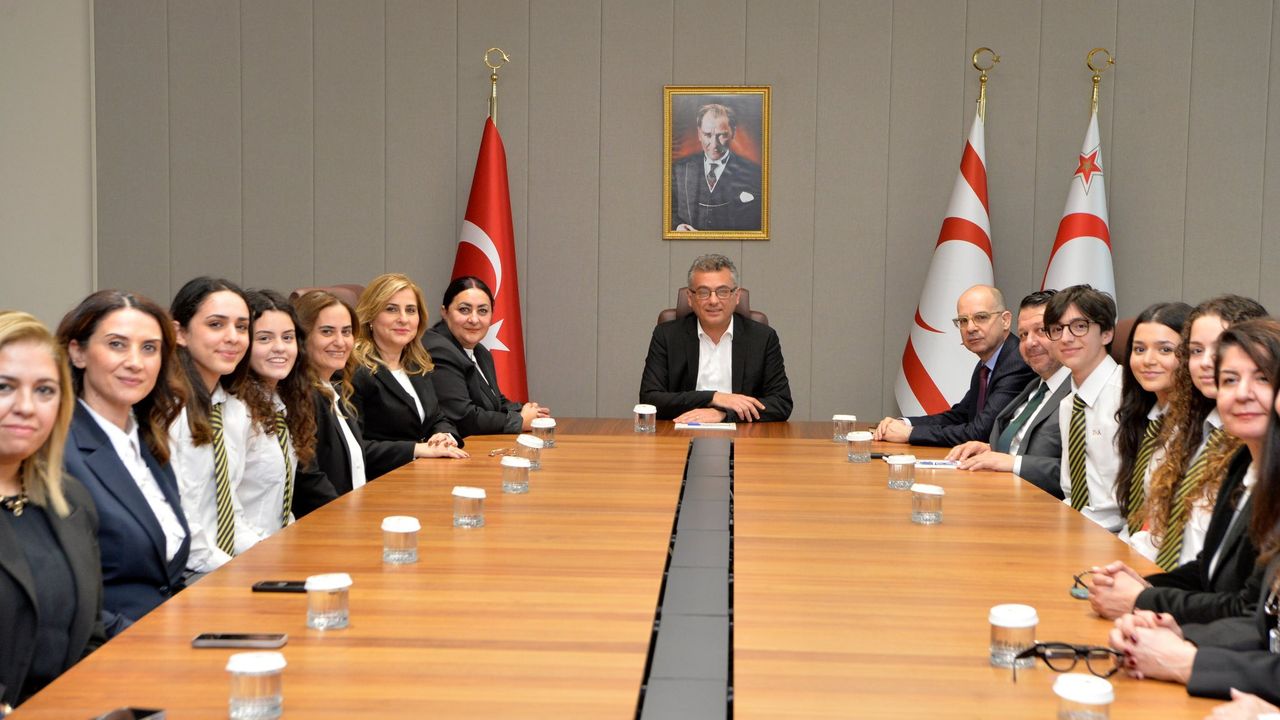 Cumhurbaşkanı Tufan Erhürman, Türk Maarif Koleji (TMK) Müdürü Candan Kortay başkanlığında okul öğretmenleri, okul aile birliği üyeleri ve öğrenci konseyini kabul etti.