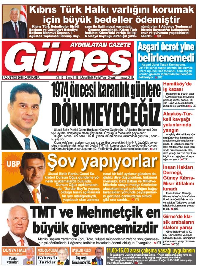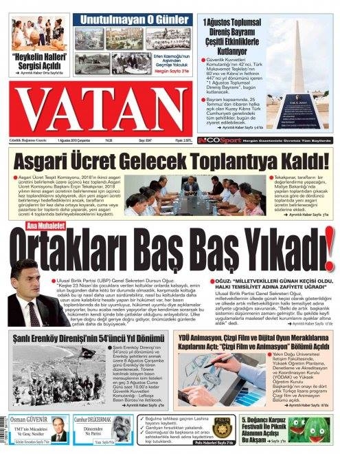 1 Ağustos 2018 Çarşamba Gazete Manşetleri