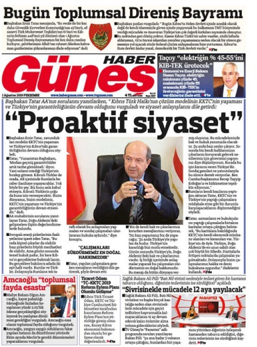 1 Ağustos 2019 Perşembe Gazete Manşetleri