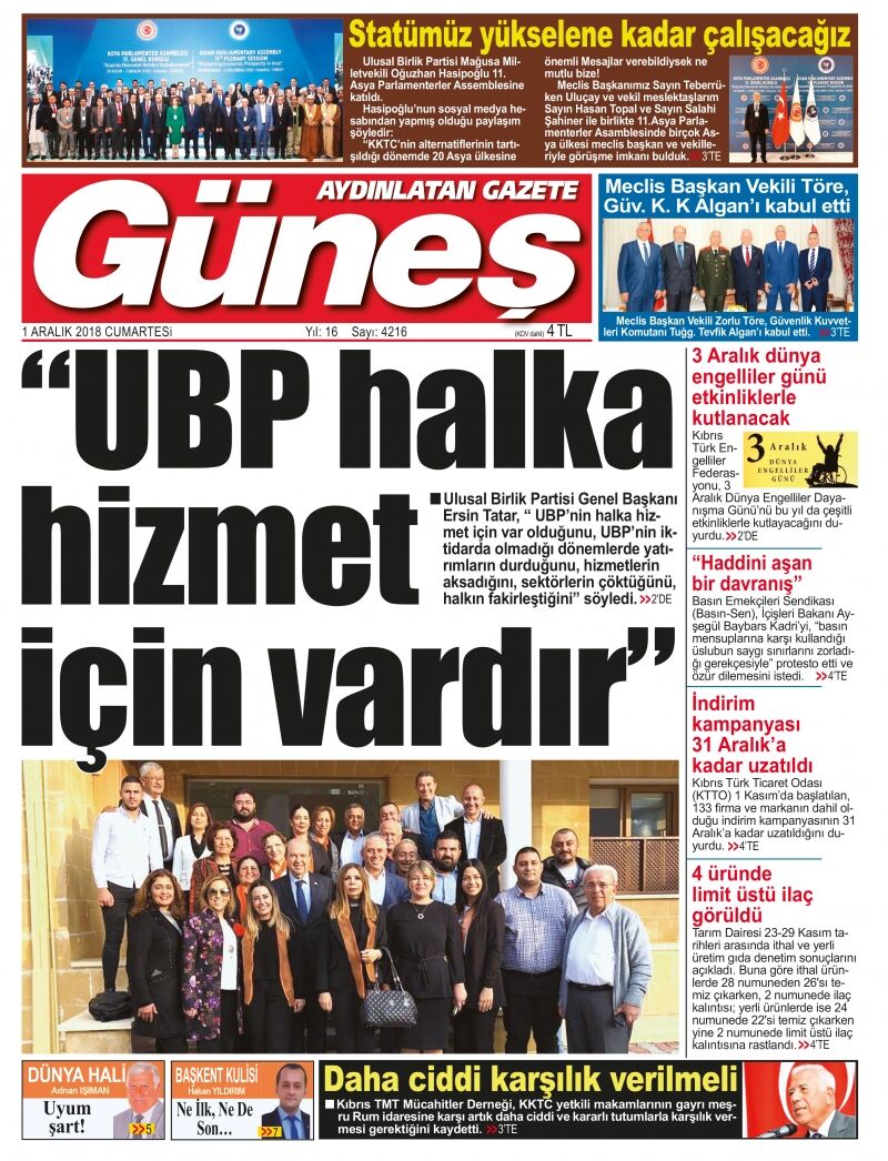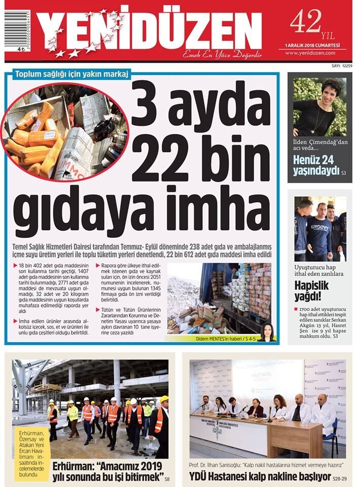 1 Aralık 2018 Cumartesi Gazete Manşetleri