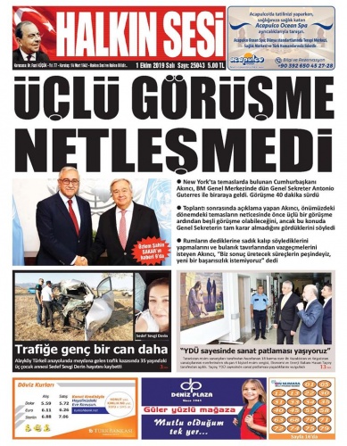1 Ekim 2019 Salı Gazete Manşetleri