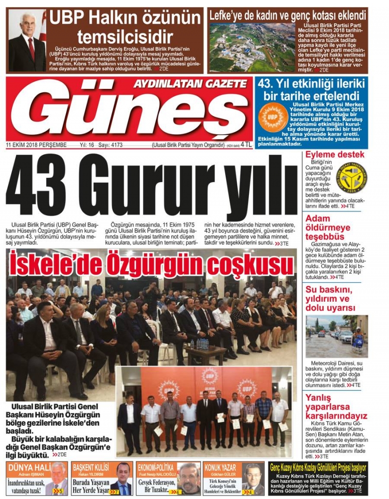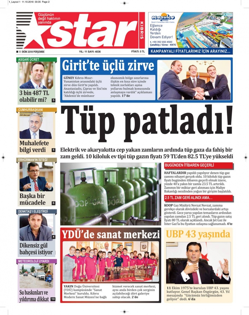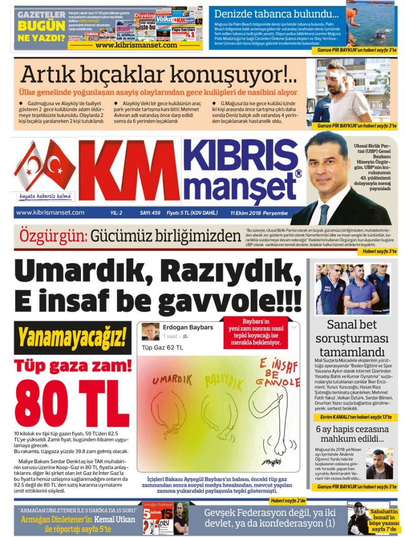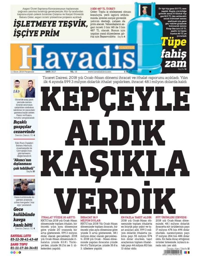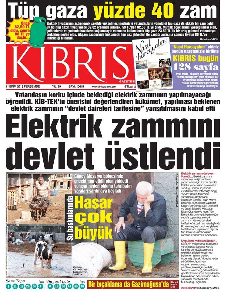 11 Ekim 2018 Perşembe Gazete Manşetleri