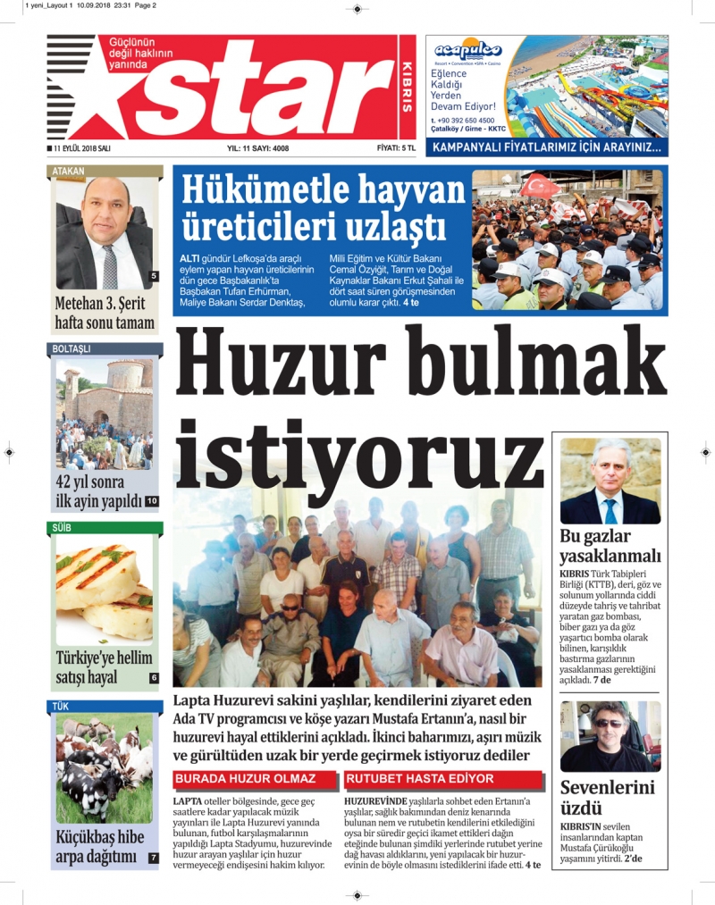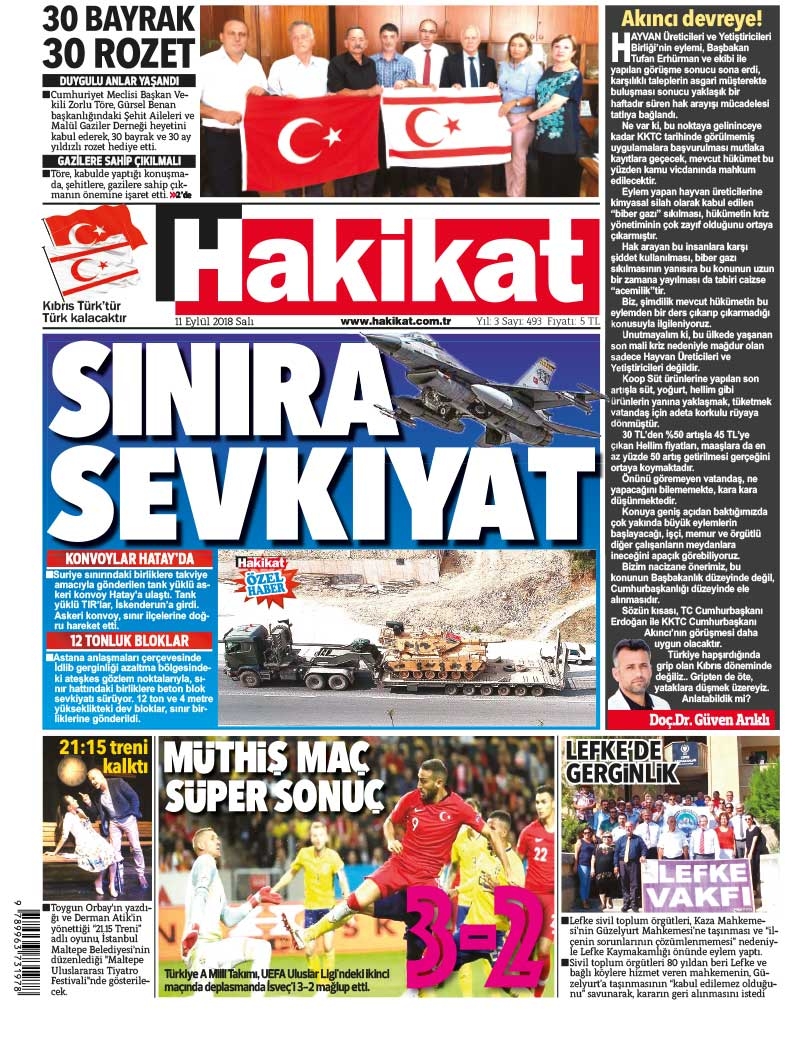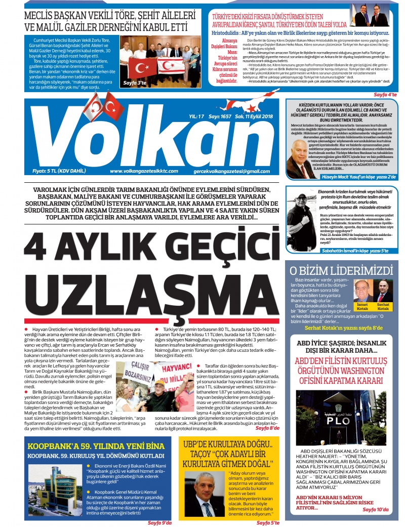 11 Eylül 2018 Salı Gazete Manşetleri