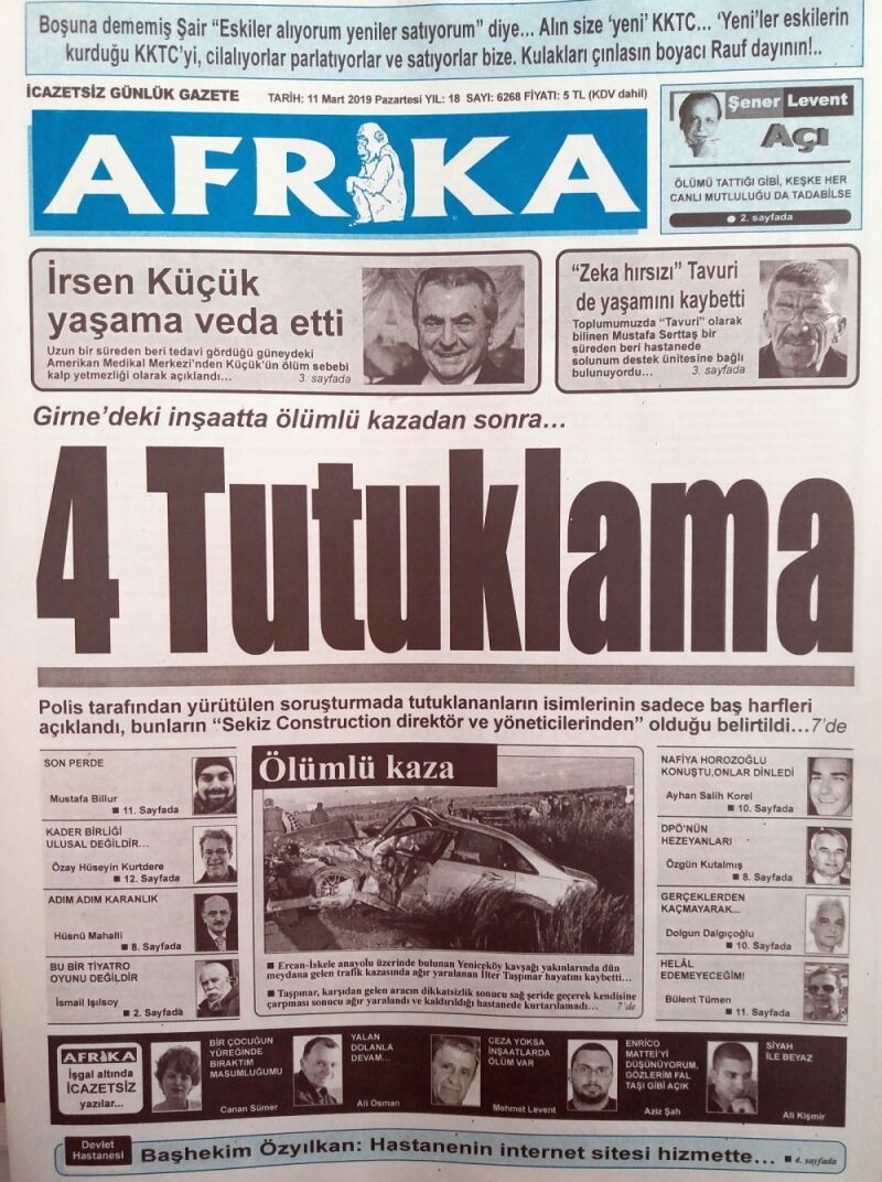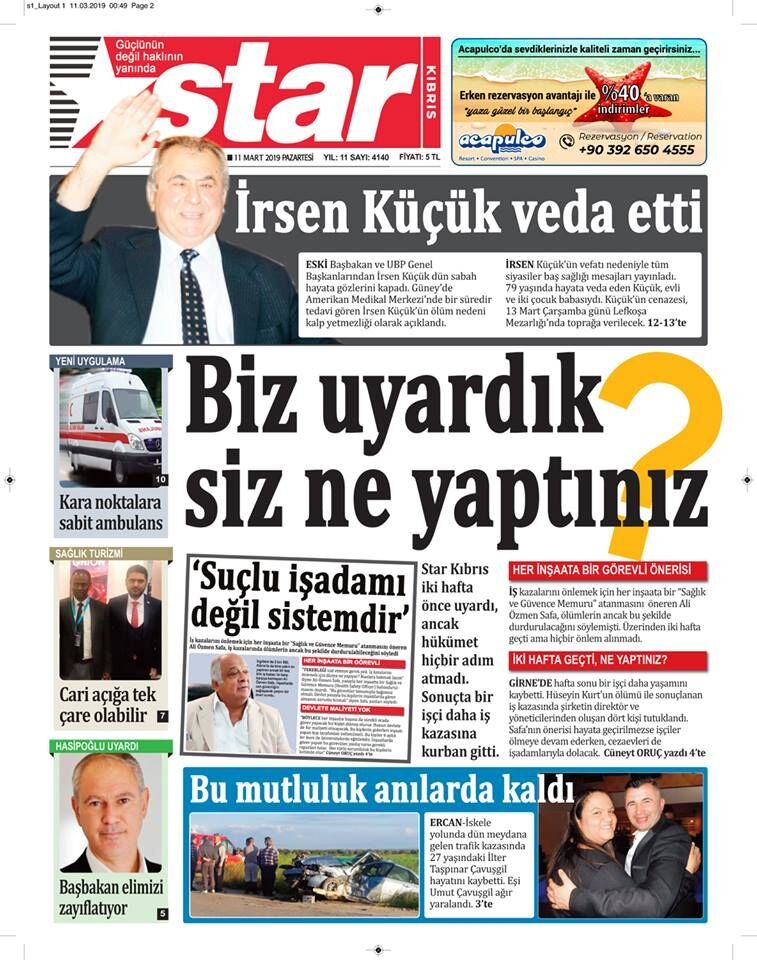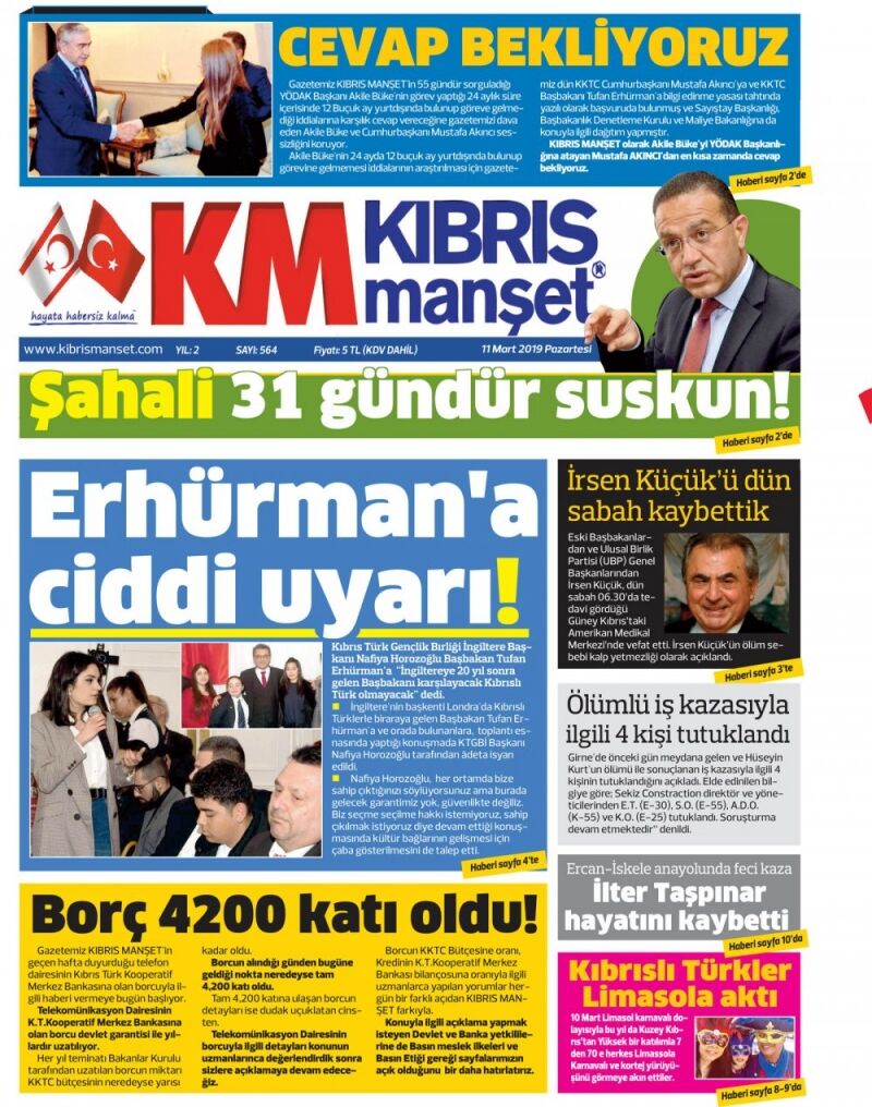 11 Mart 2019 Pazartesi Gazete Manşetleri