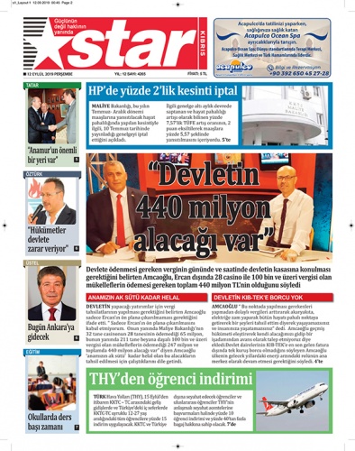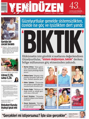 12 Eylül 2019 Perşembe Gazete Manşetleri