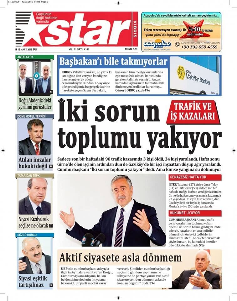 12 Mart 2019 Salı Gazete Manşetleri
