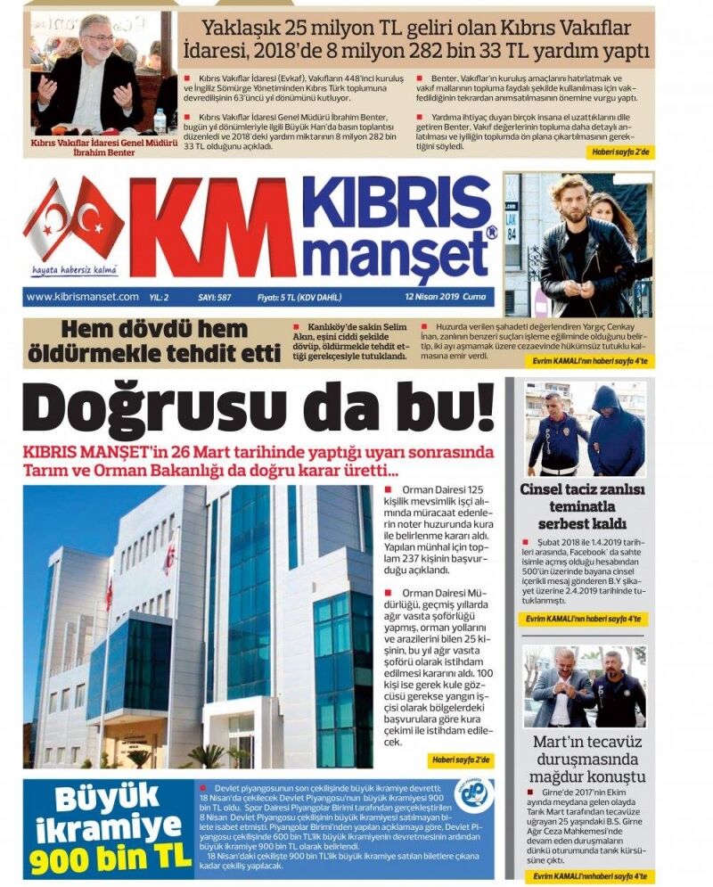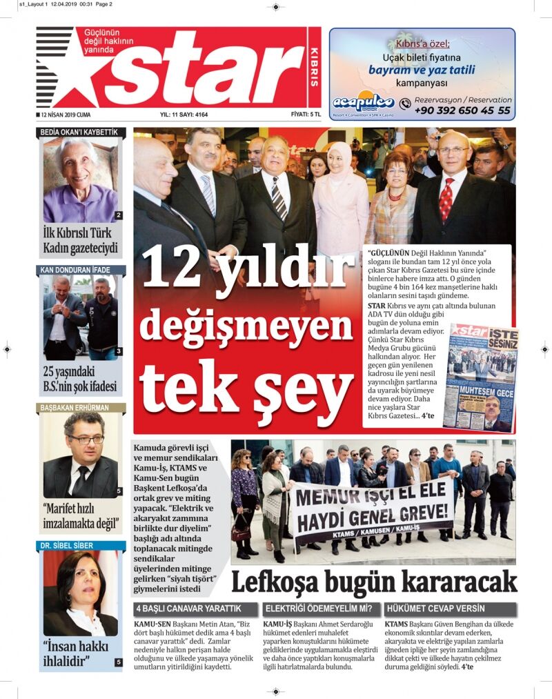 12 Nisan 2019 Cuma Gazete Manşetleri