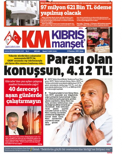 12 Temmuz 2019 Cuma Gazete Manşetleri