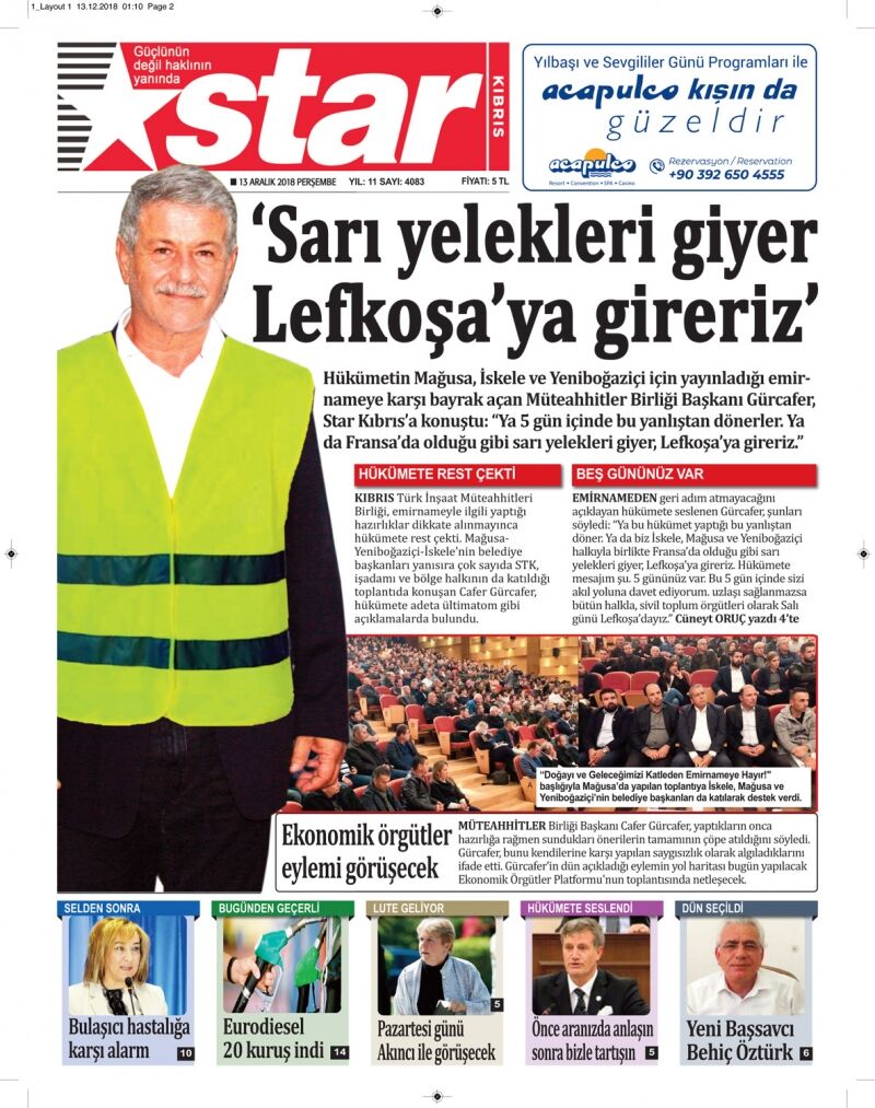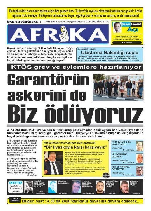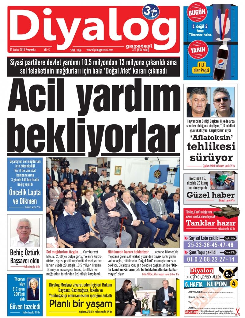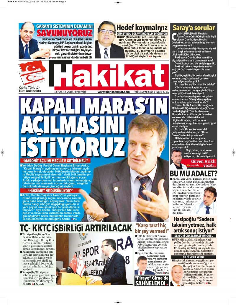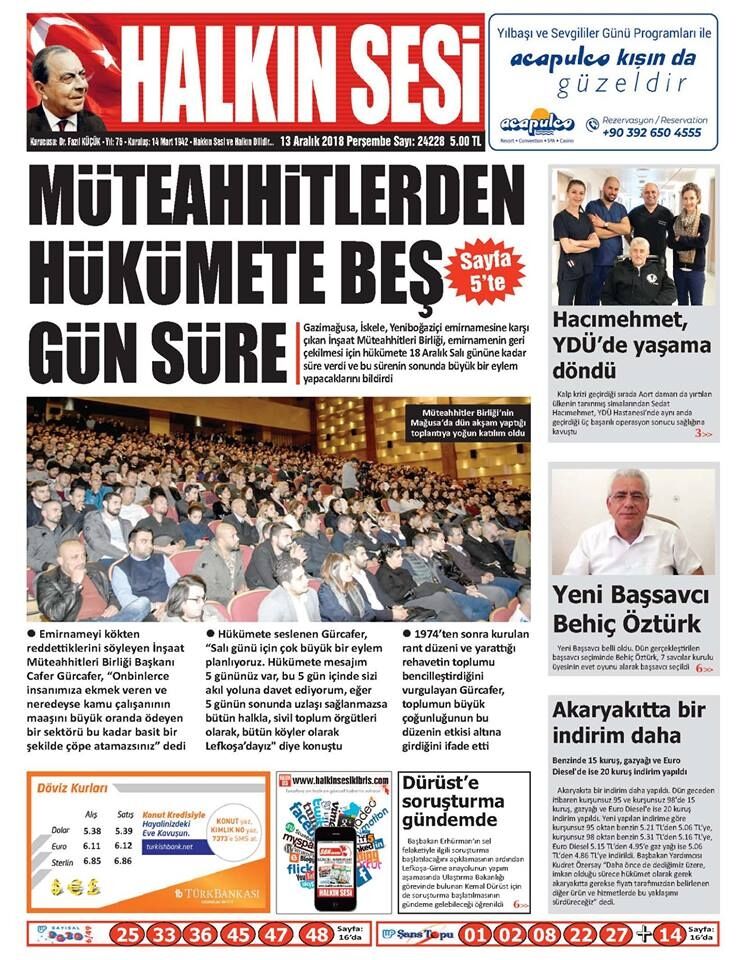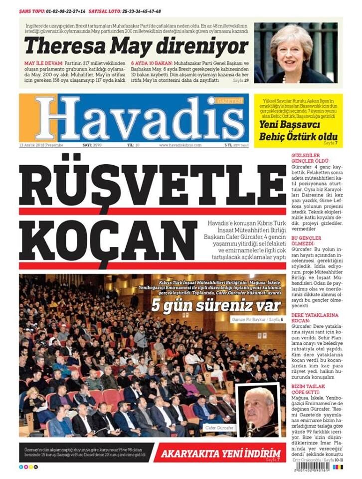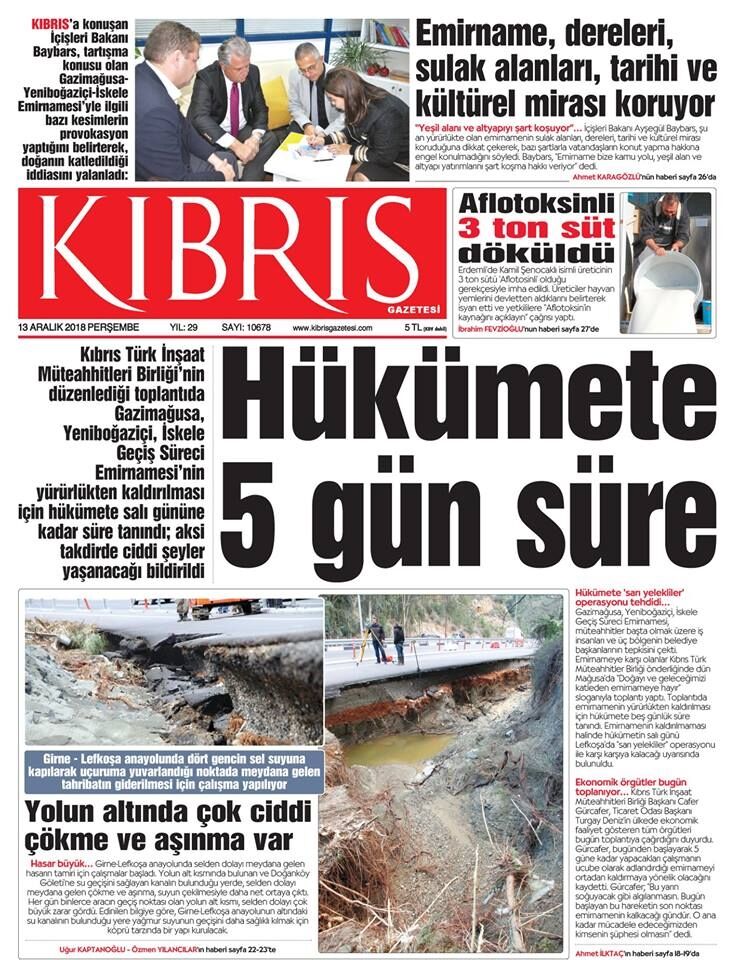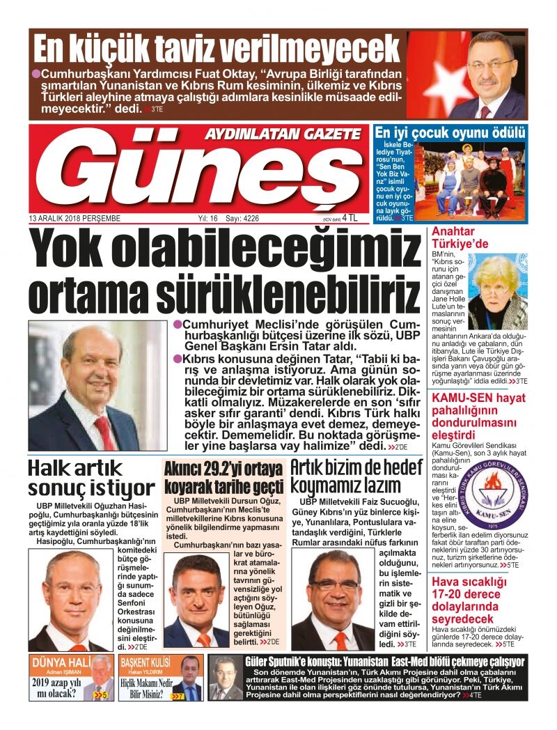 13 Aralık 2018 Perşembe Gazete Manşetleri