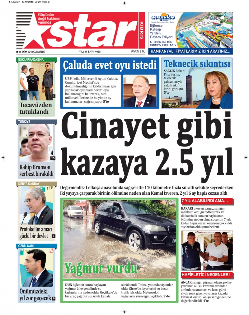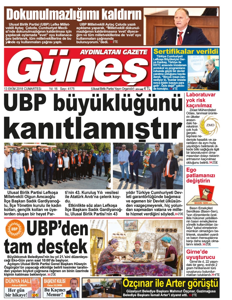 13 Ekim 2018 Cumartesi Gazete Manşetleri