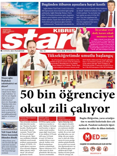 13 Eylül 2021 Pazartesi Gazete Manşetleri