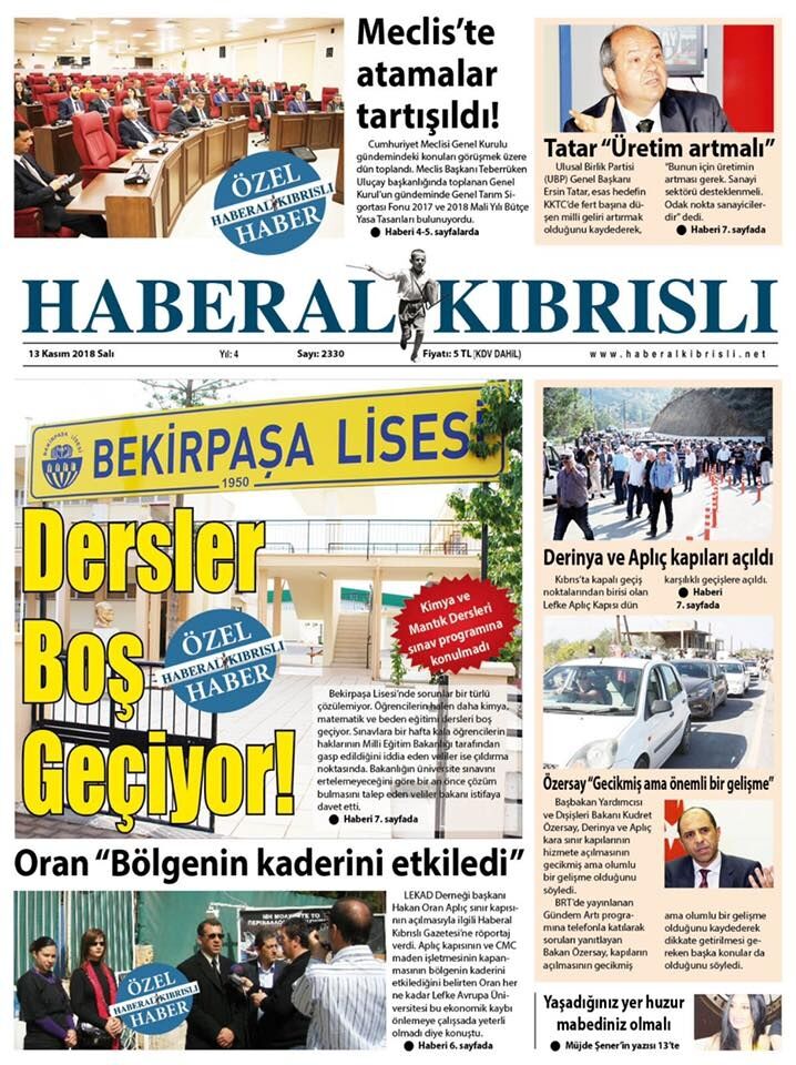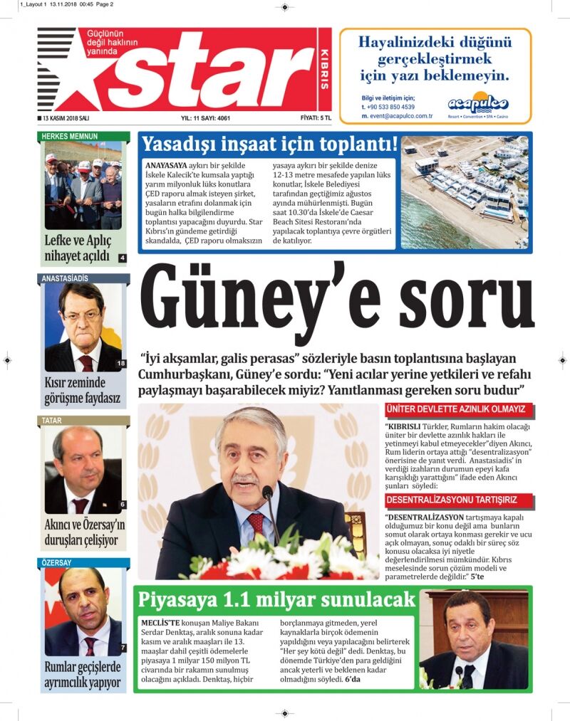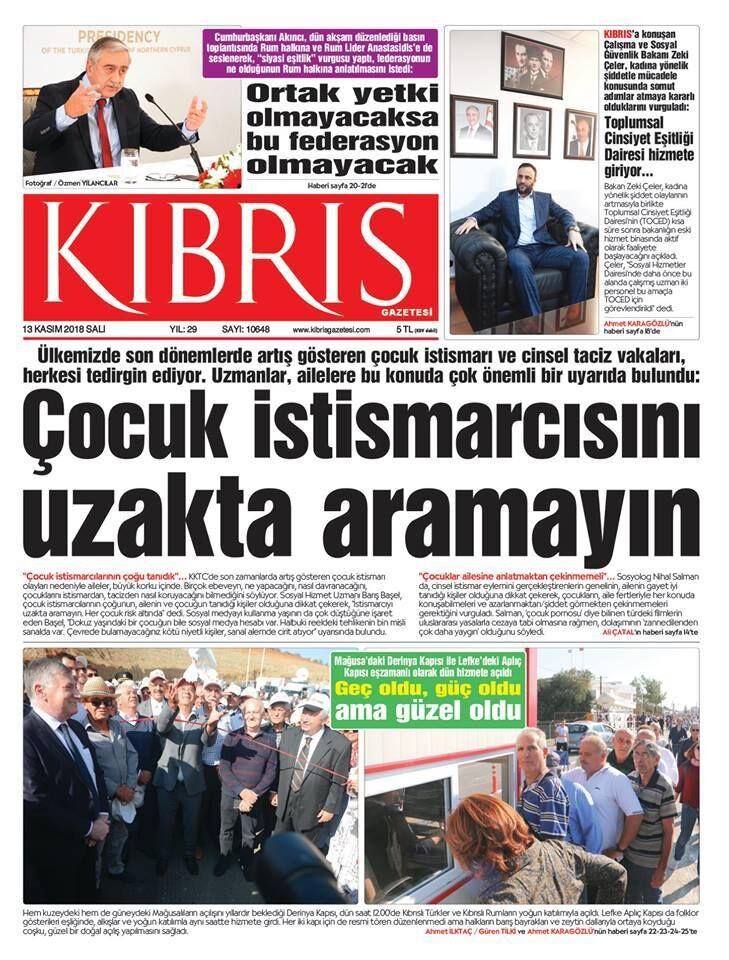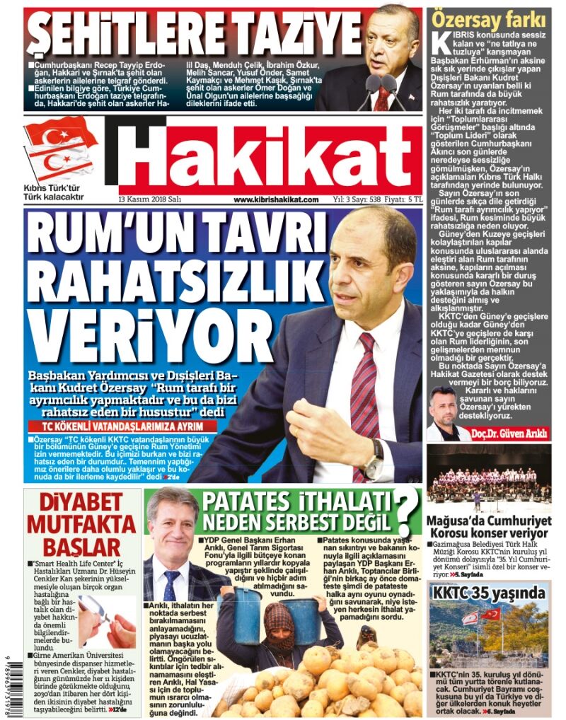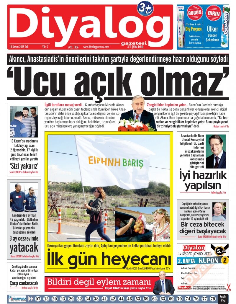 13 Kasım 2018 Salı Gazete Manşetleri