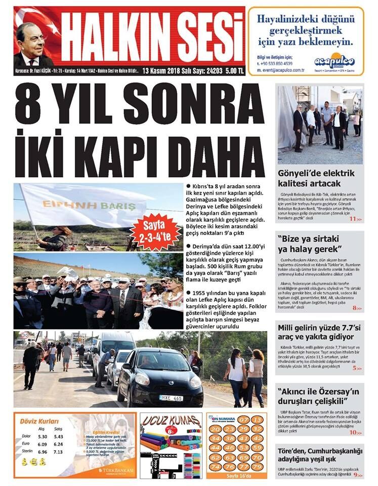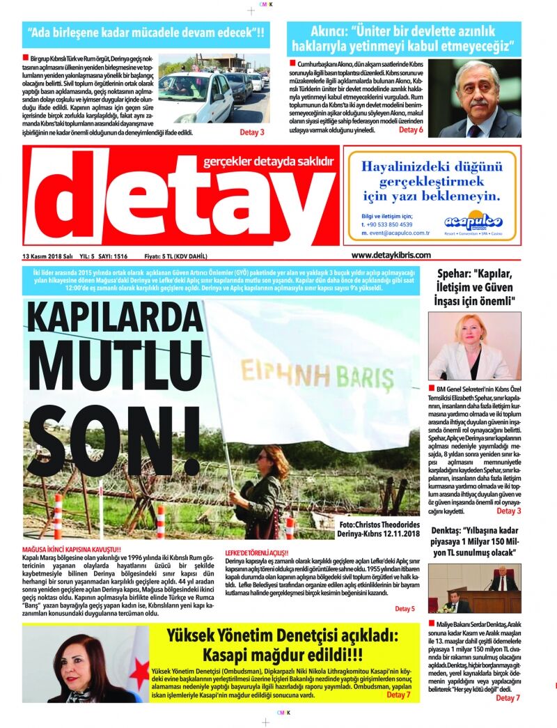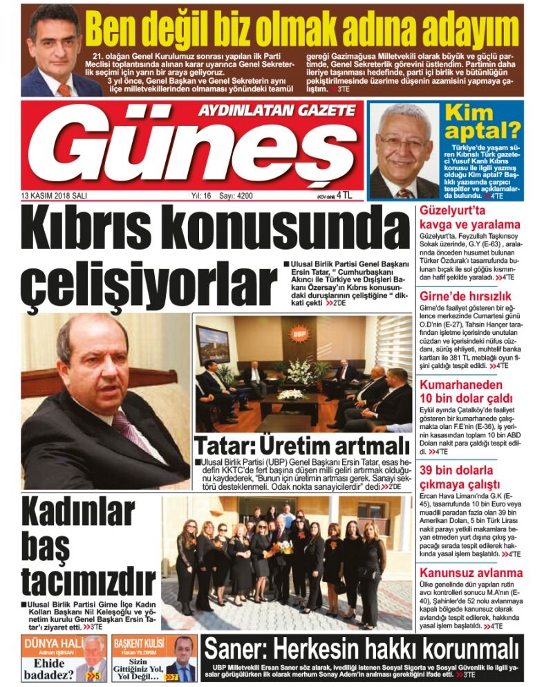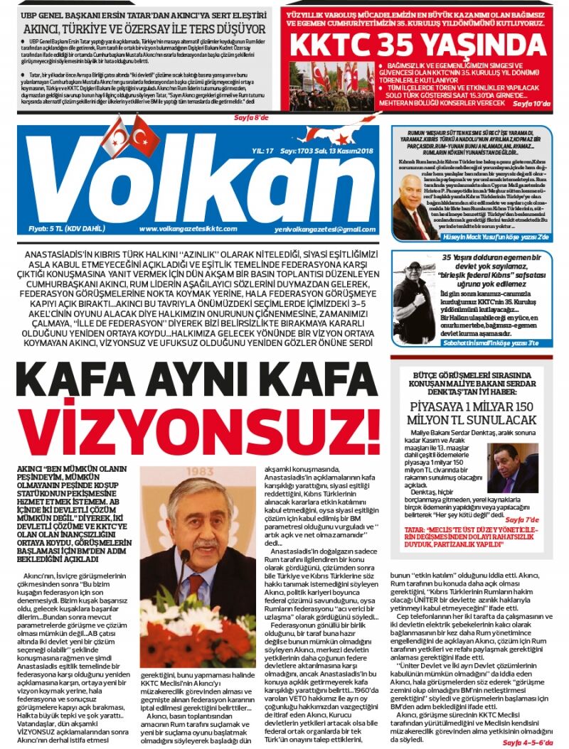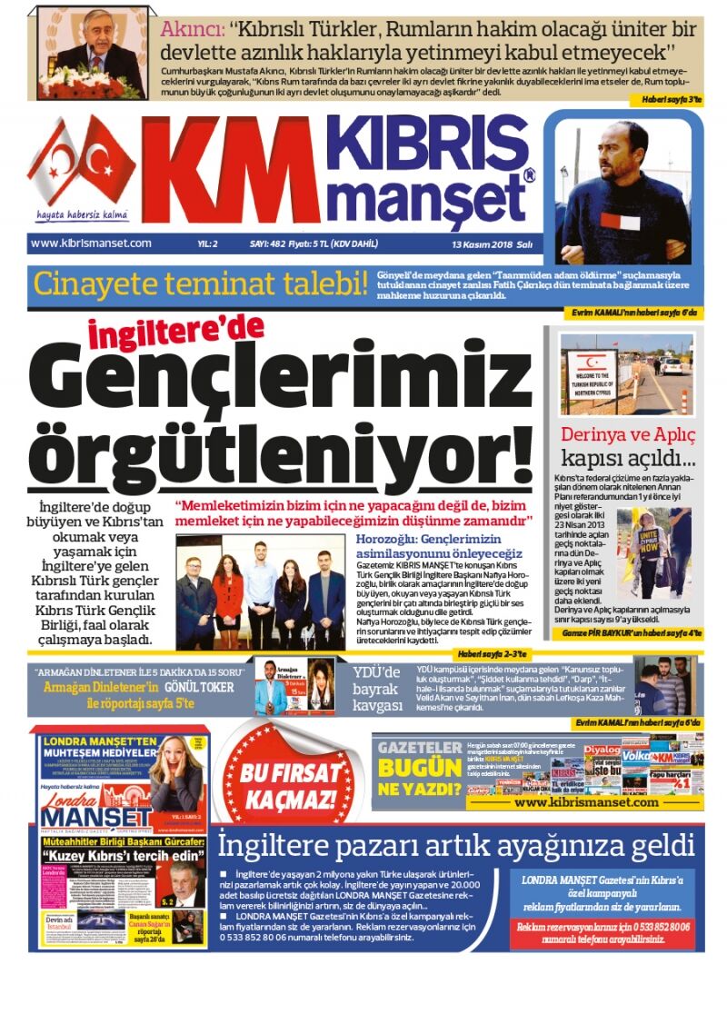 13 Kasım 2018 Salı Gazete Manşetleri