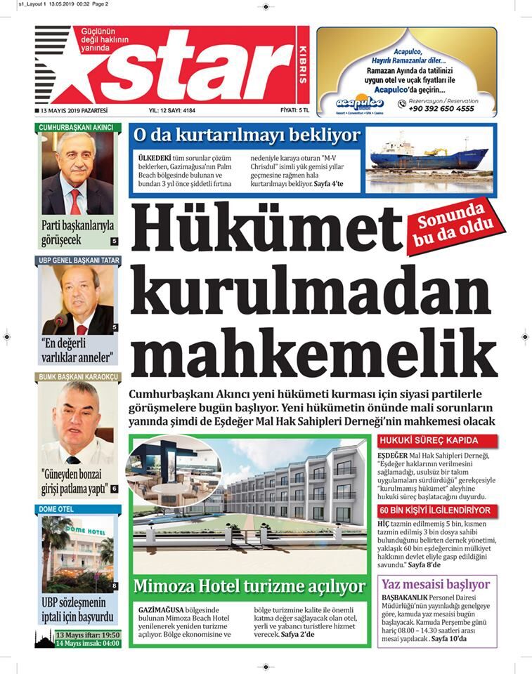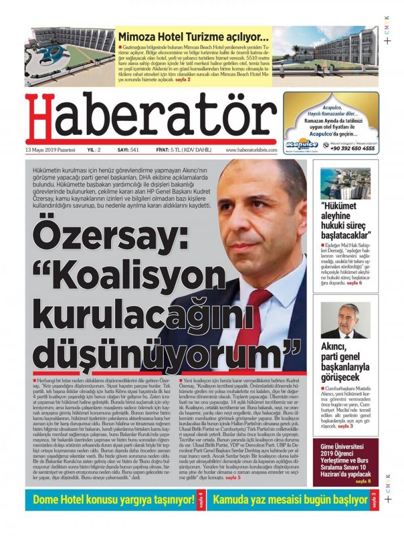 13 Mayıs 2019 Pazartesi Gazete Manşetleri