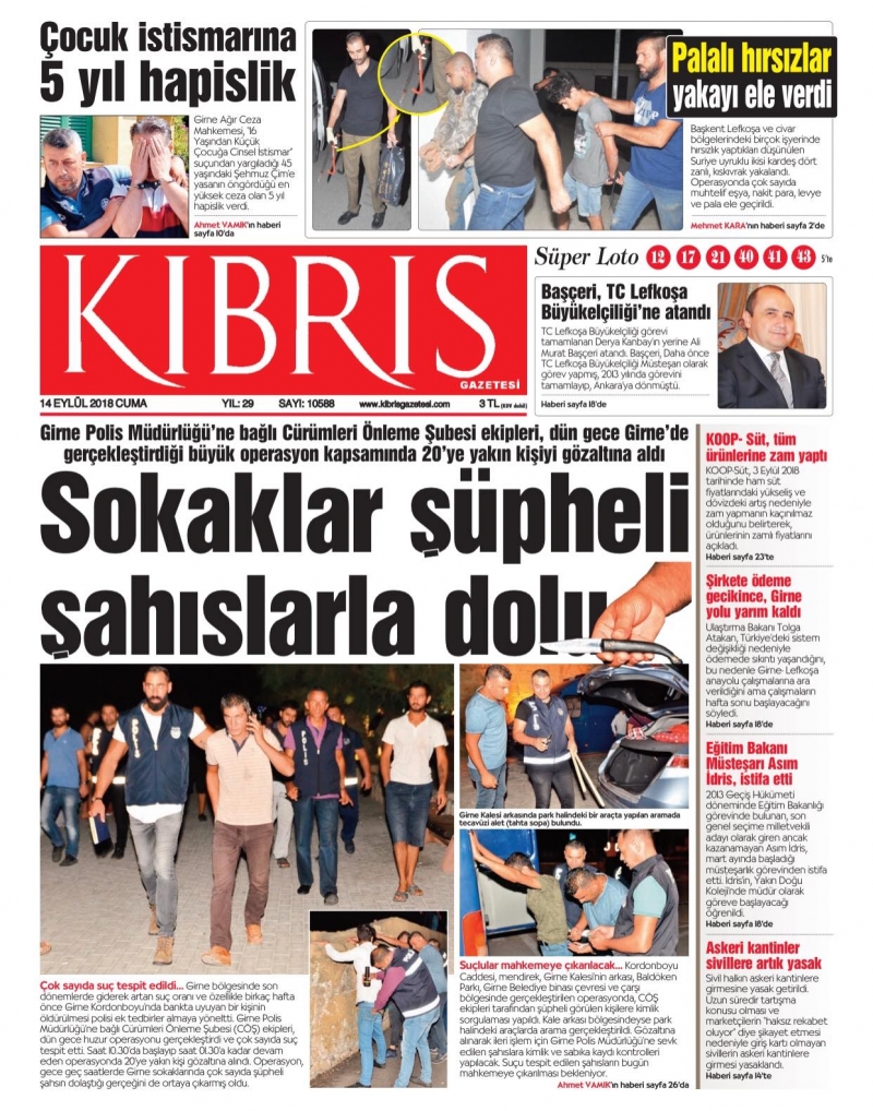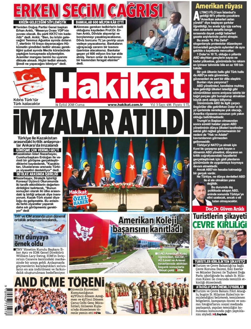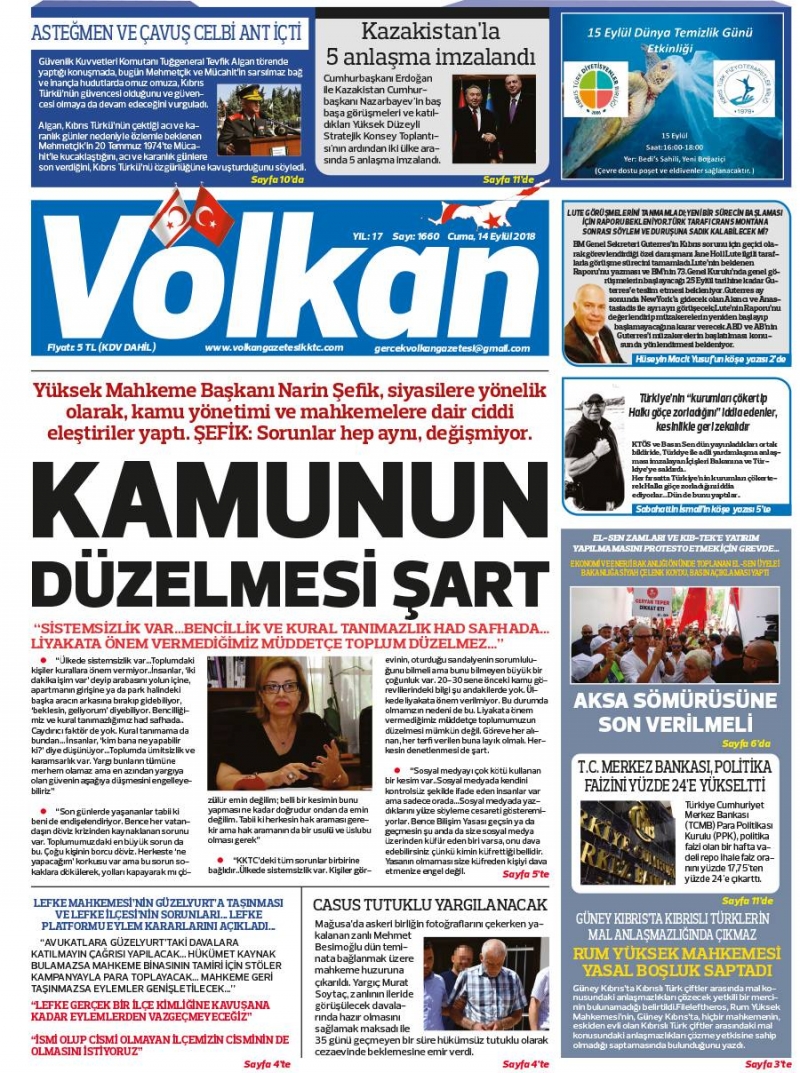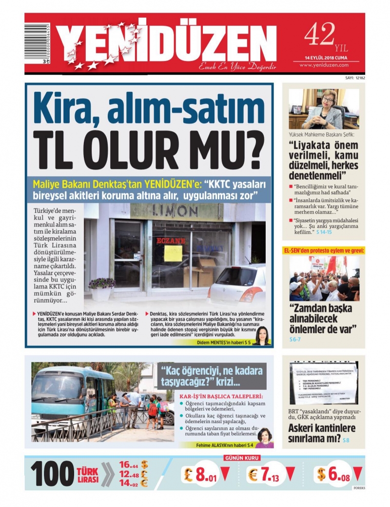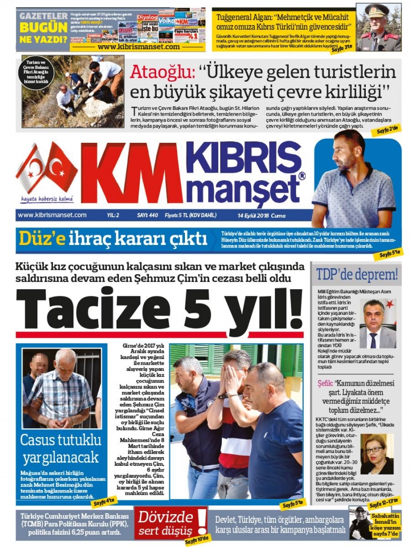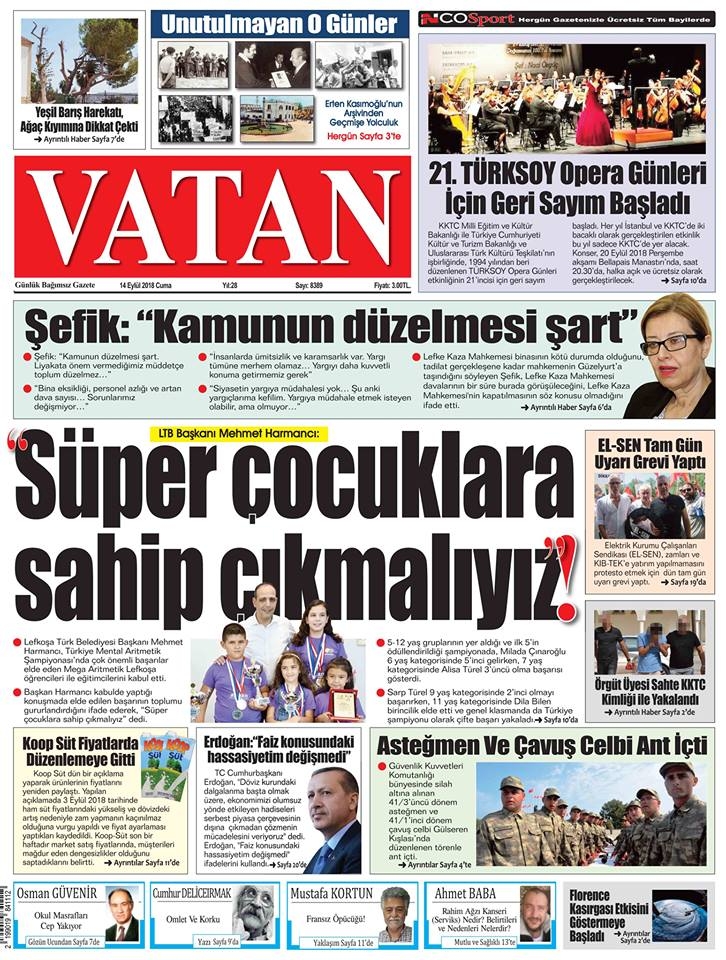 14 Eylül 2018 Cuma Gazete Manşetleri