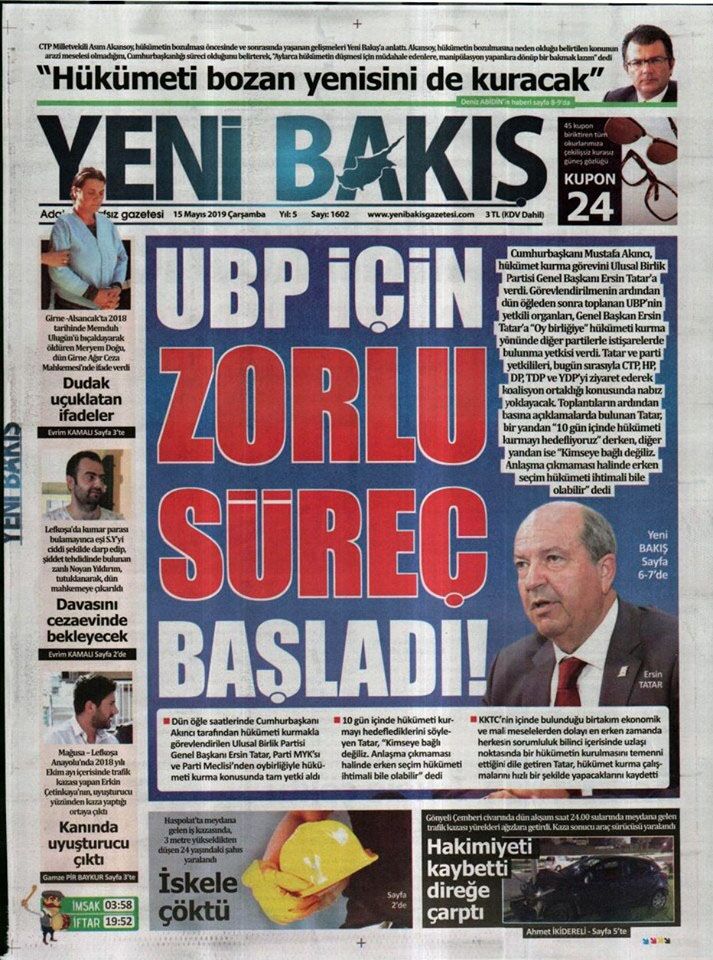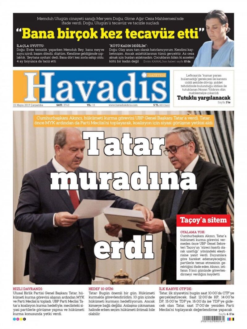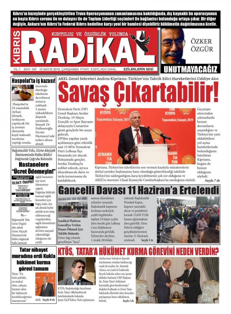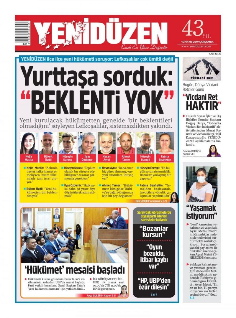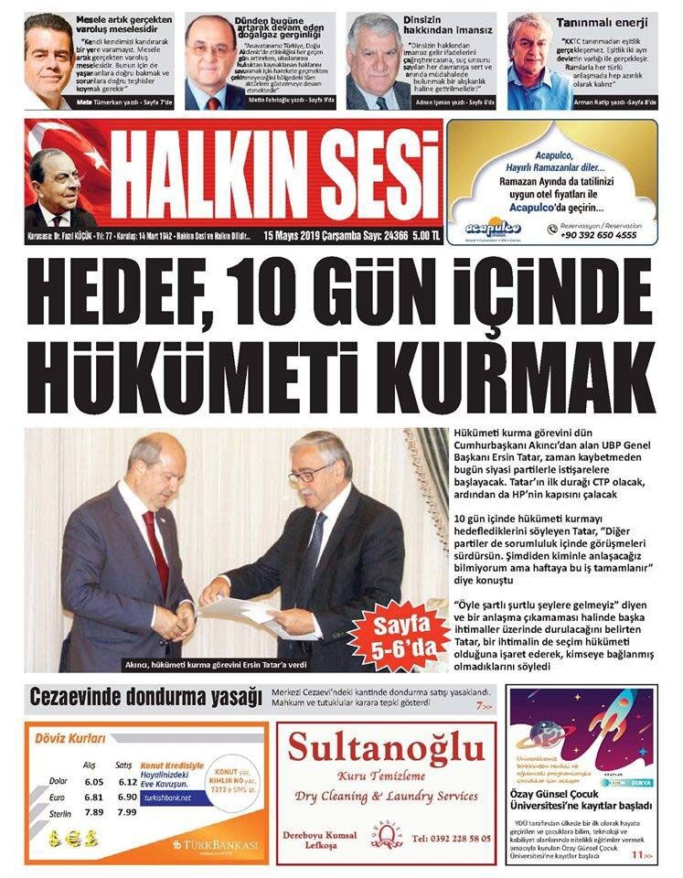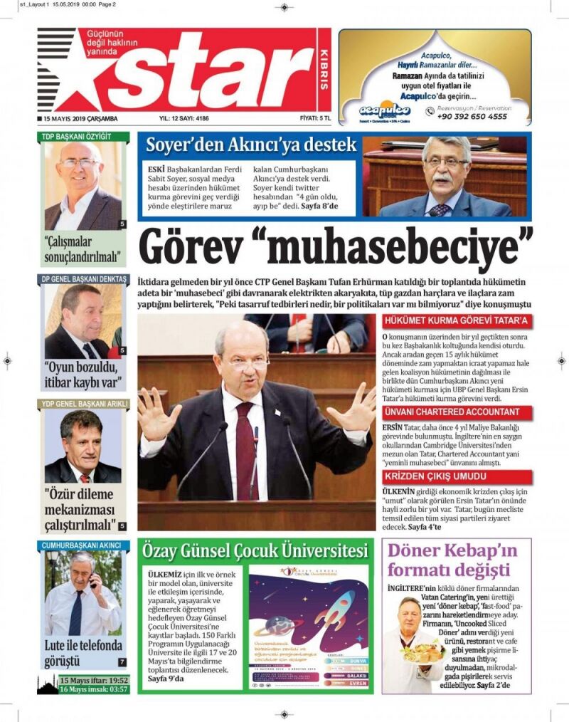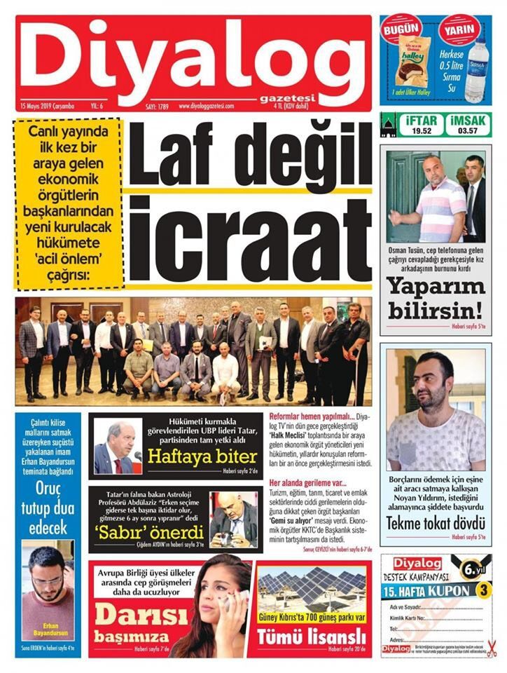 15 Mayıs 2019 Çarşamba Gazete Manşetleri