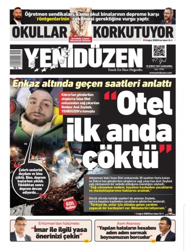15 Şubat 2023 Çarşamba Gazete Manşetleri