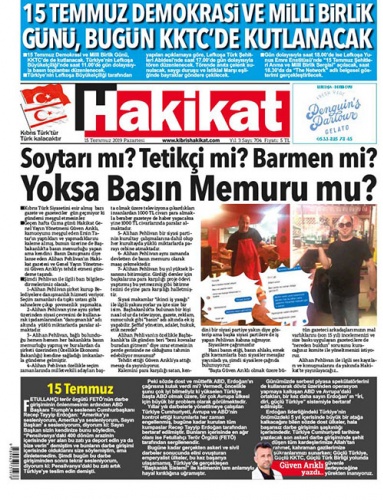 15 Temmuz 2019 Pazartesi Gazete Manşetleri