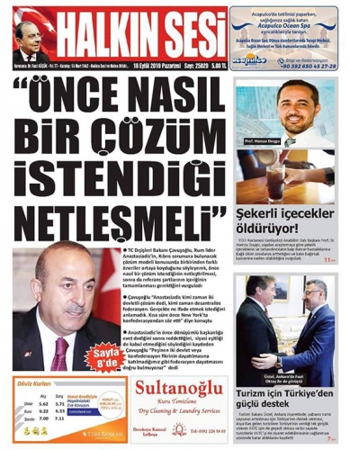 16 Eylül 2019 Pazartesi Gazete Manşetleri