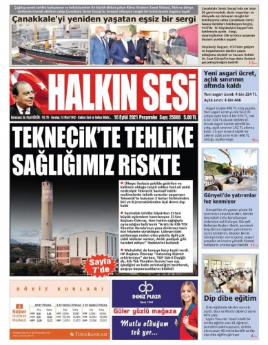 16 Eylül 2021 Perşembe Gazete Manşetleri