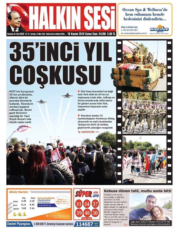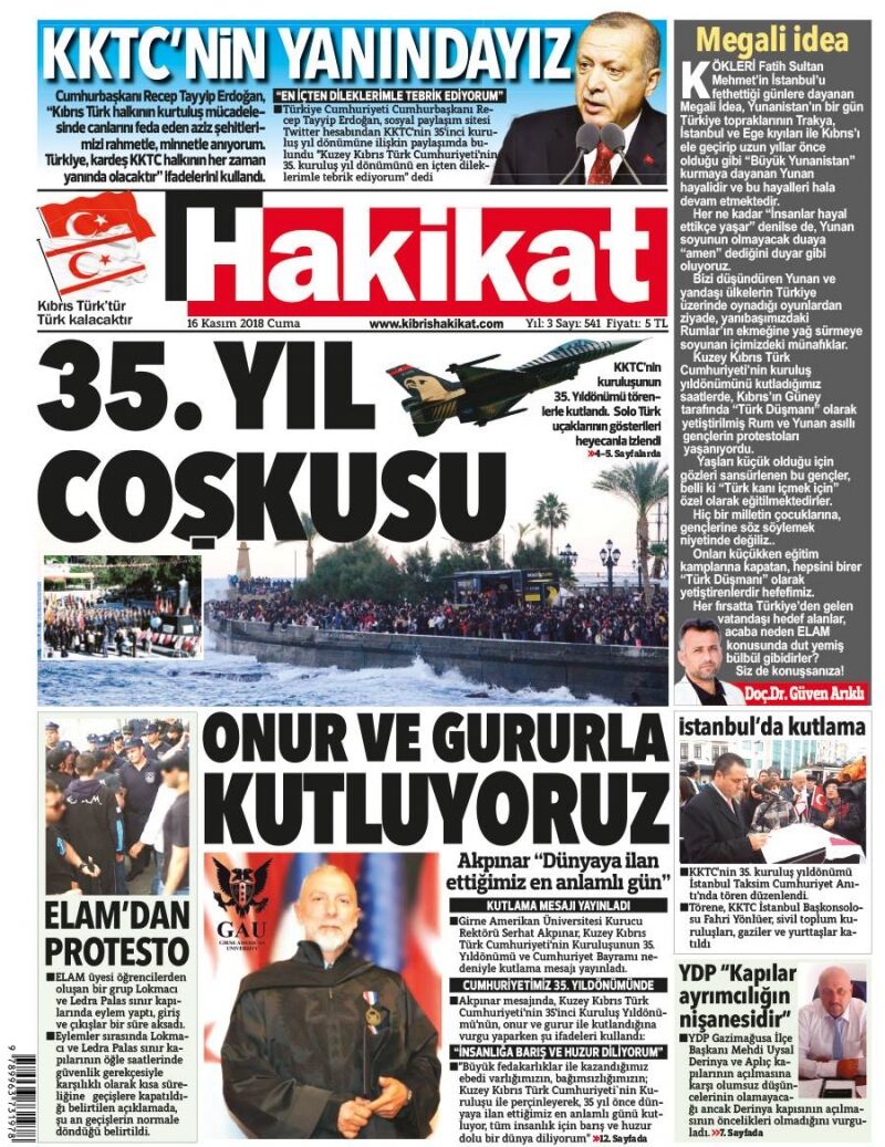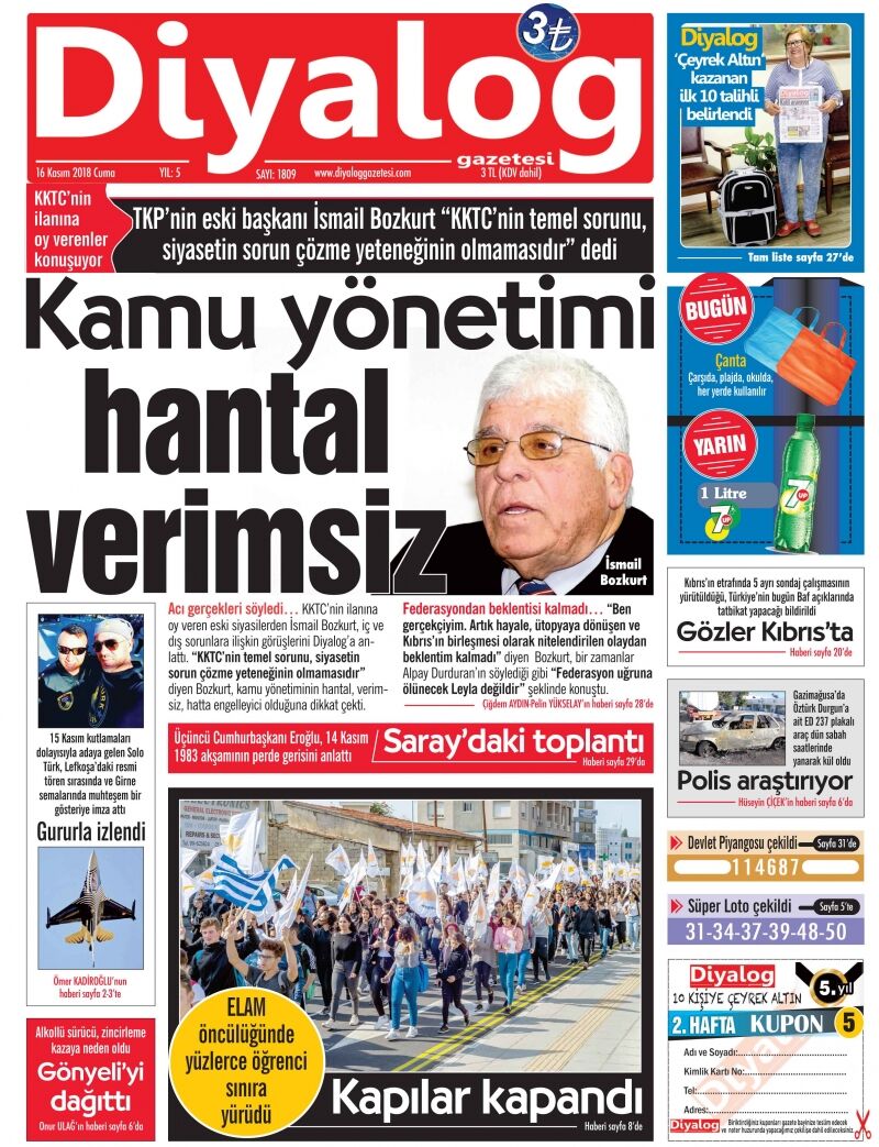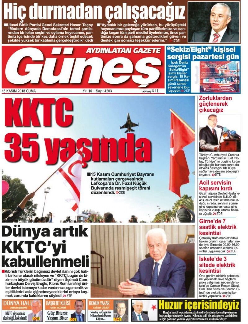 16 Kasım 2018 Cuma Gazete Manşetleri