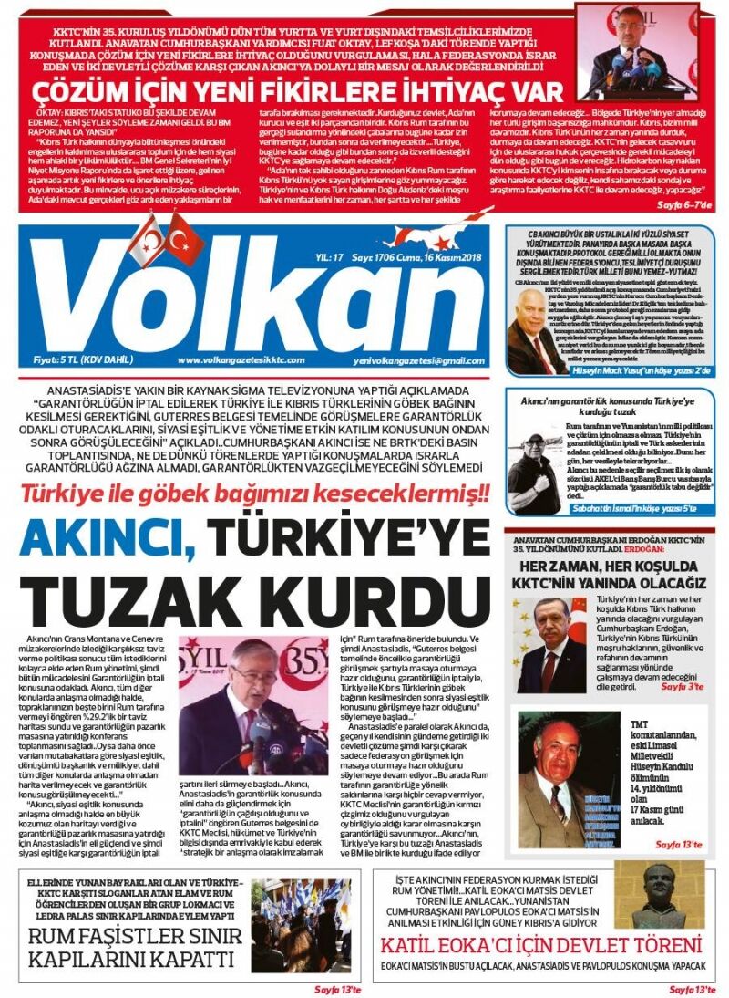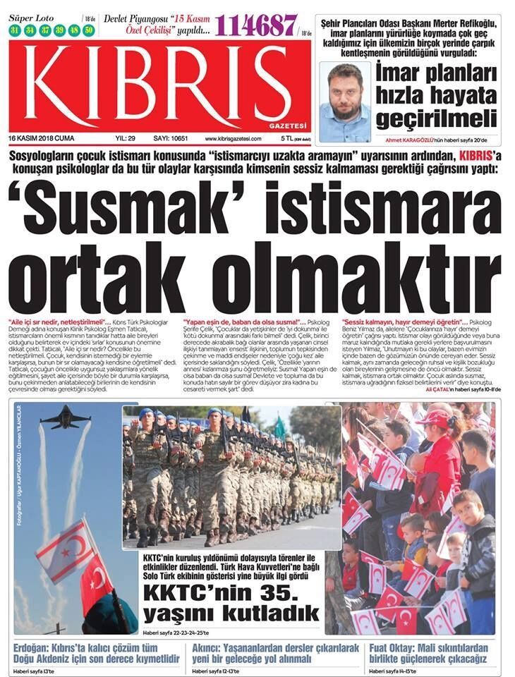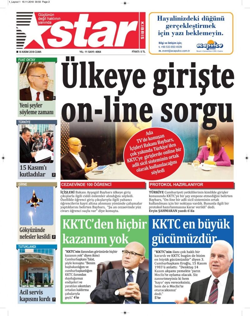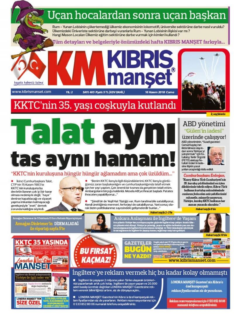 16 Kasım 2018 Cuma Gazete Manşetleri