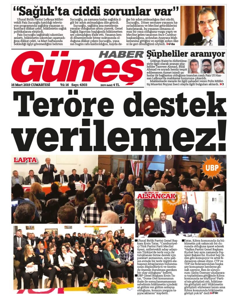 16 Mart 2019 Cumartesi Gazete Manşetleri