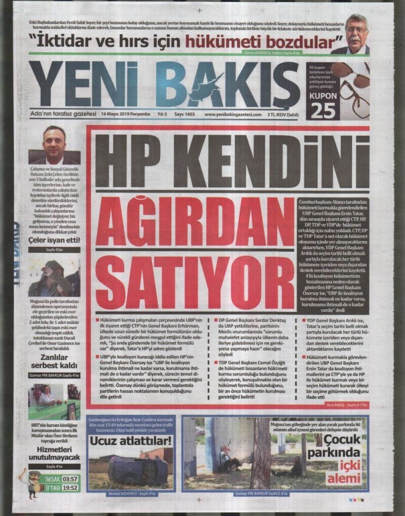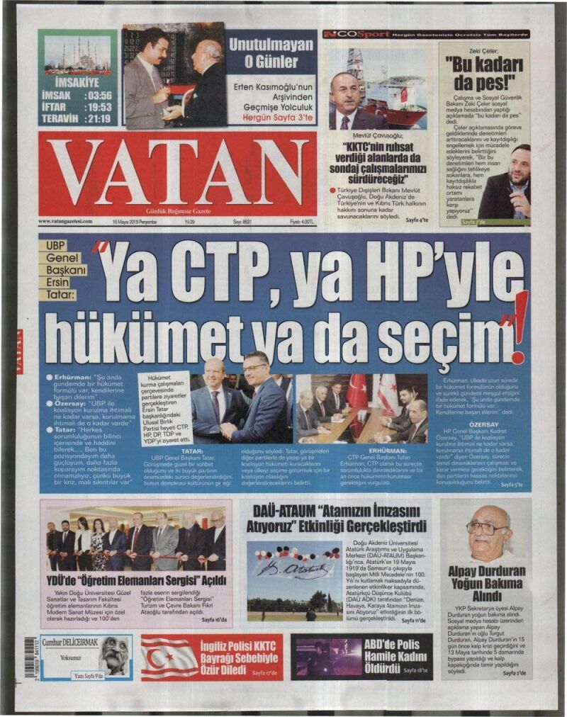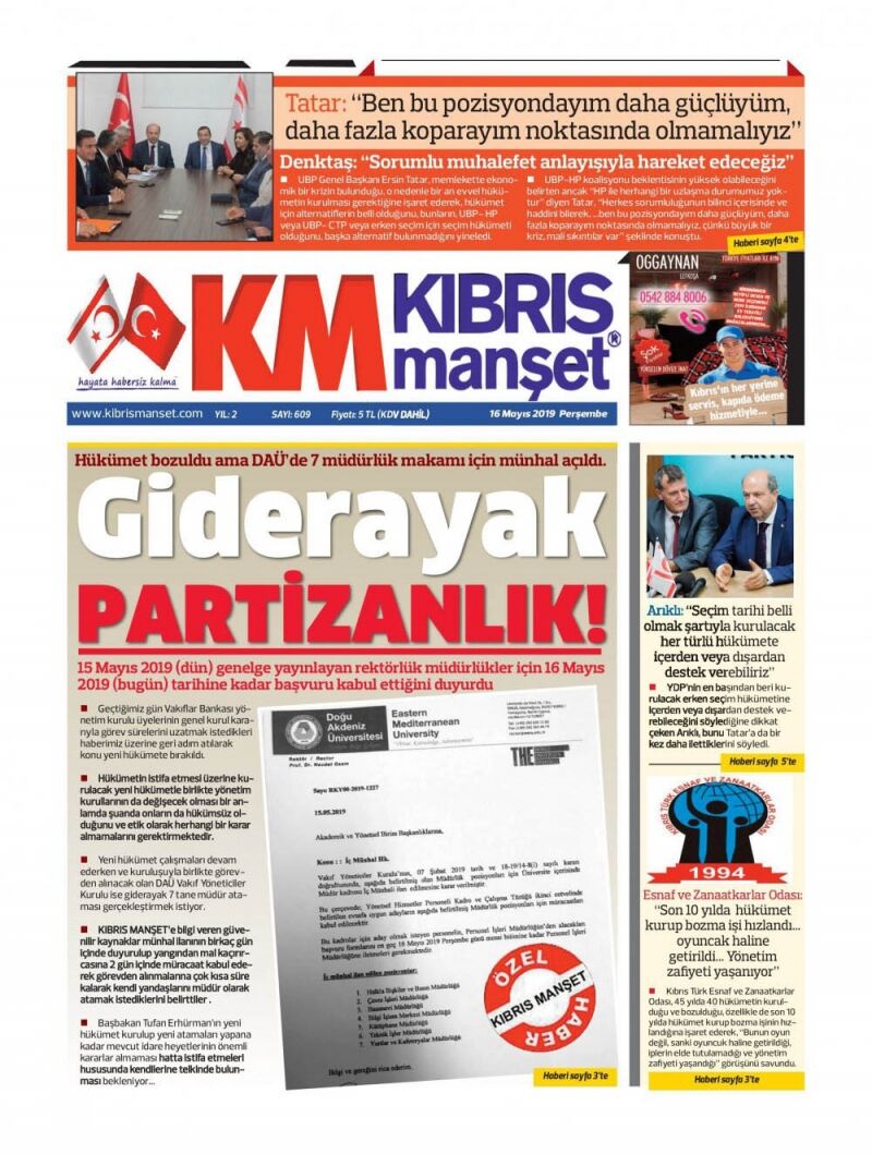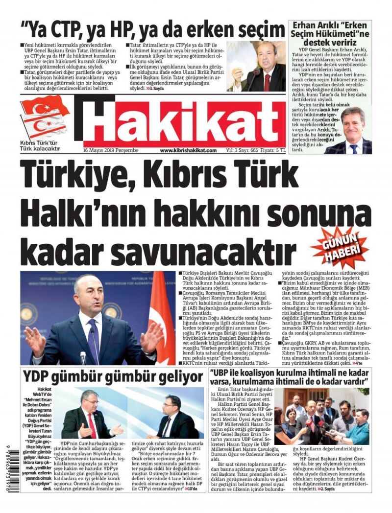 16 Mayıs 2019 Perşembe Gazete Manşetleri