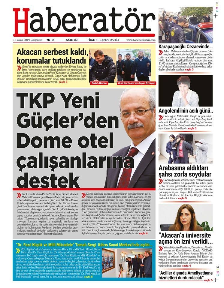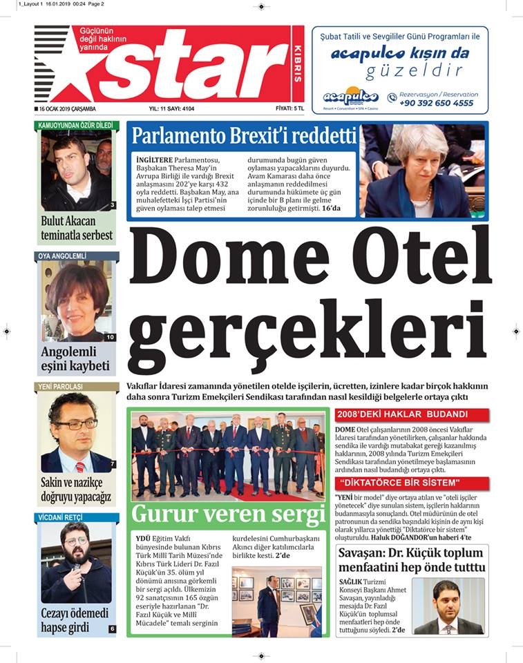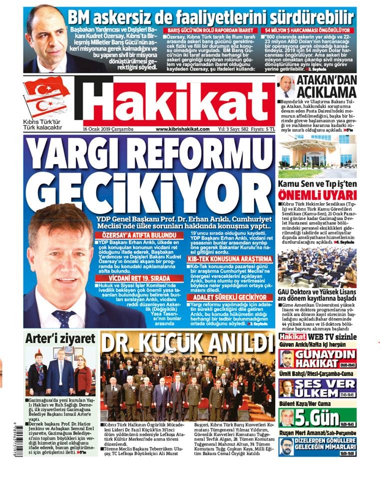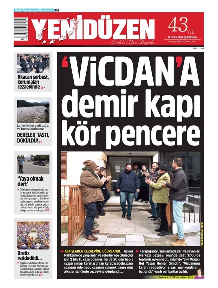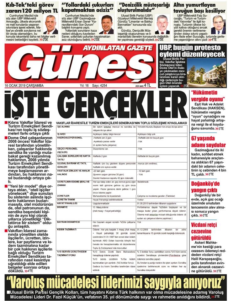 16 Ocak 2019 Çarşamba Gazete Manşetleri