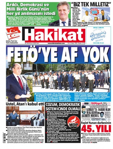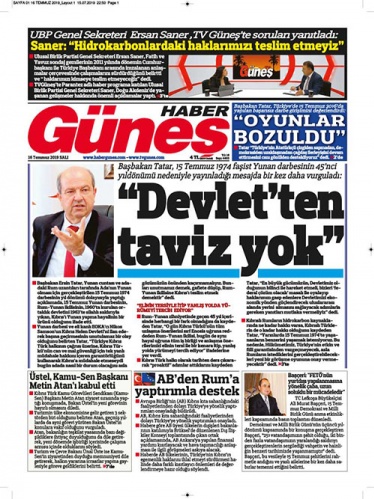 16 Temmuz 2019 Salı Gazete Manşetleri