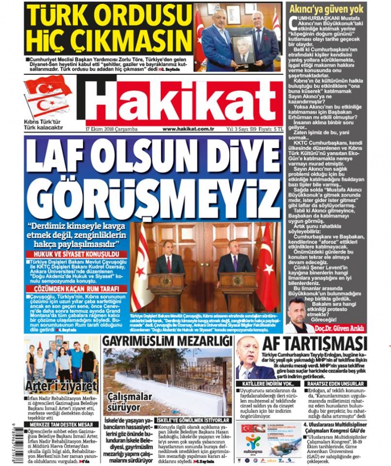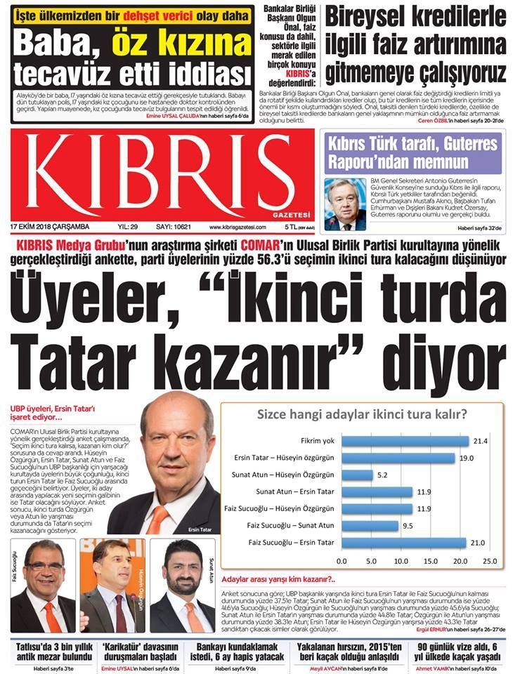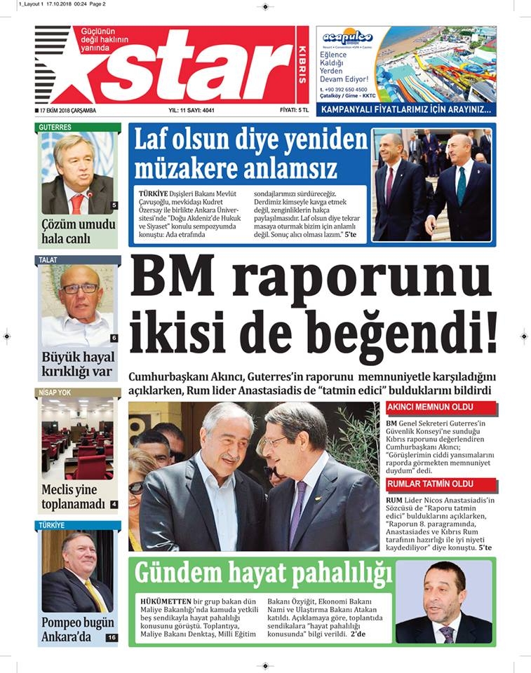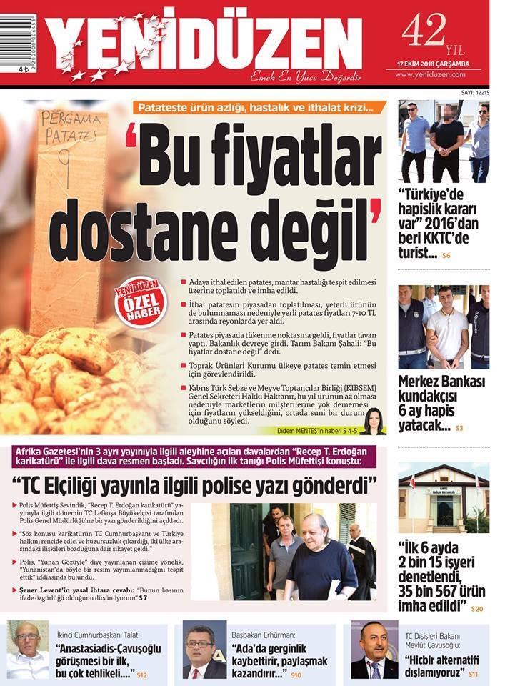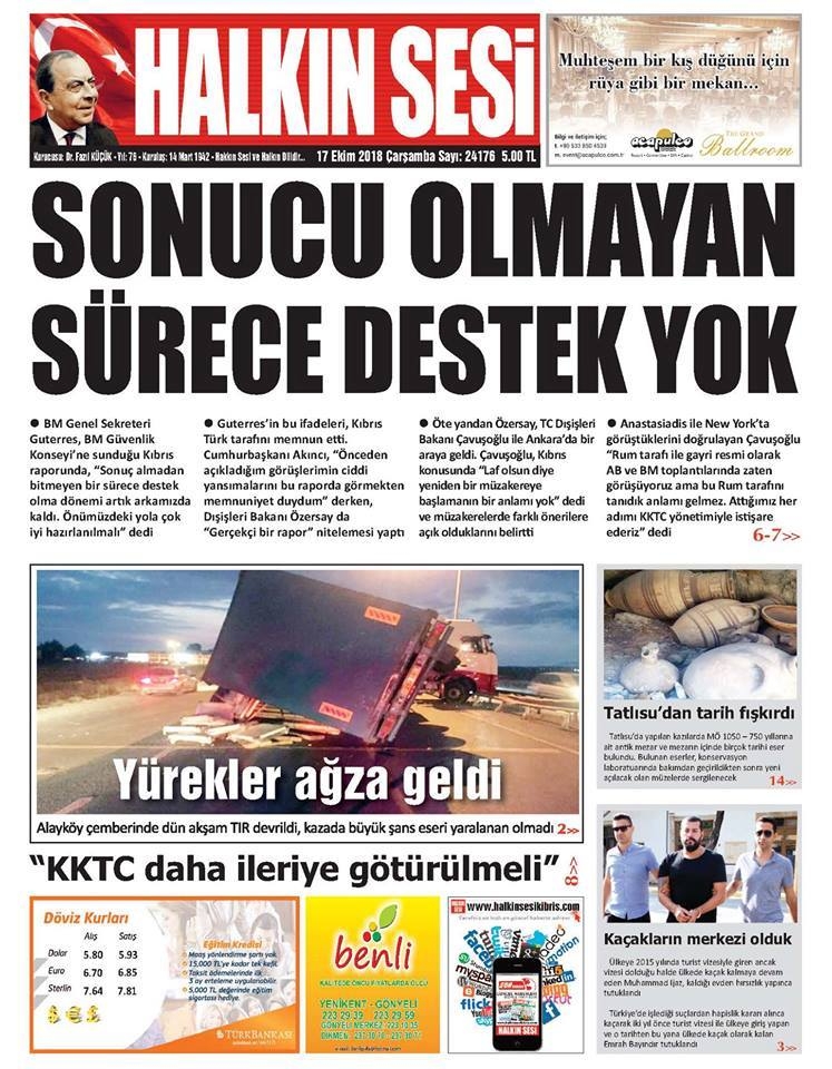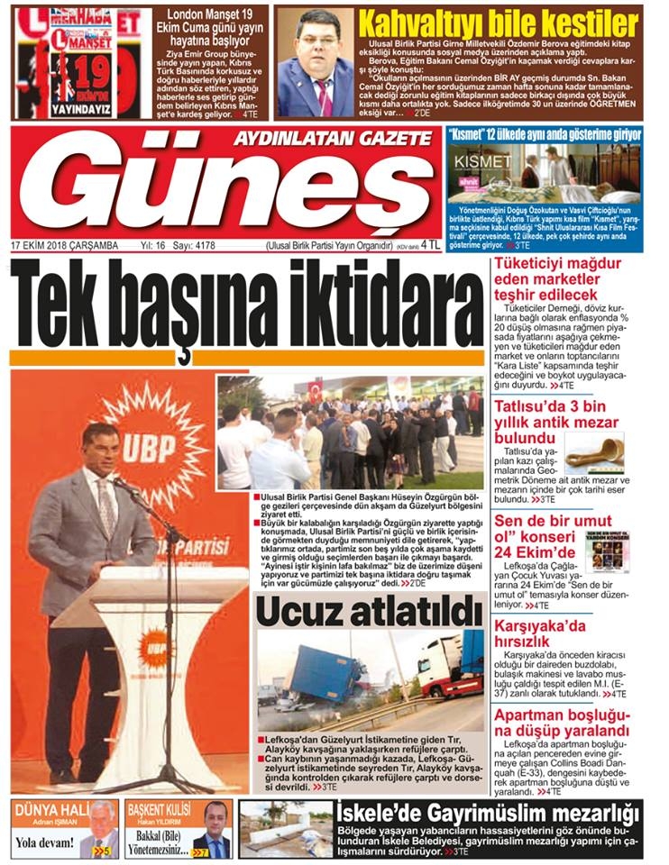 17 Ekim 2018 Çarşamba Gazete Manşetleri