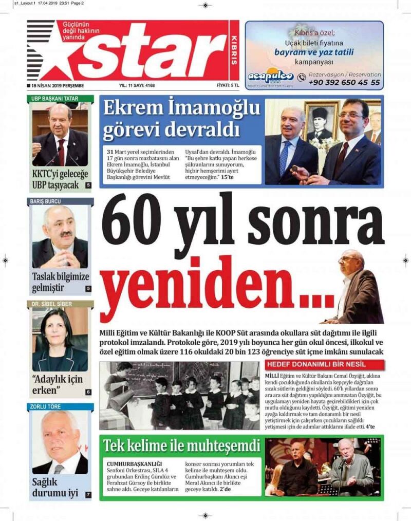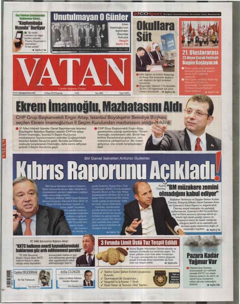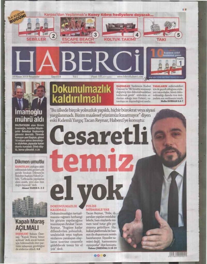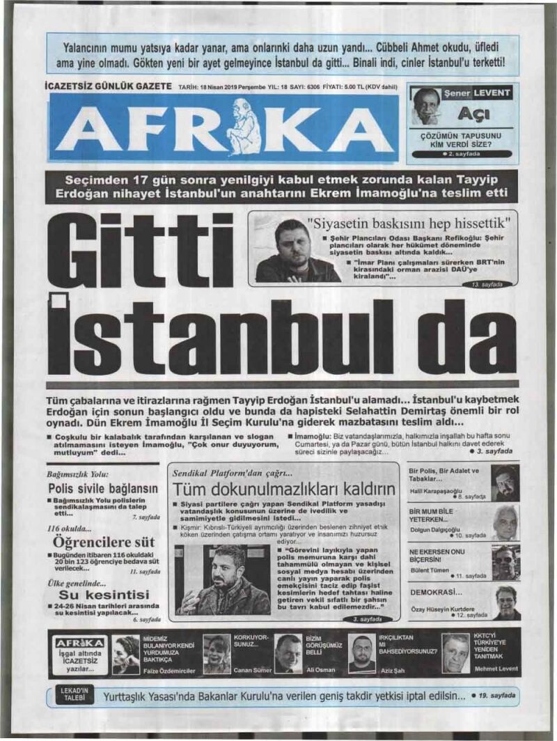18 Nisan 2019 Perşembe Gazete Manşetleri