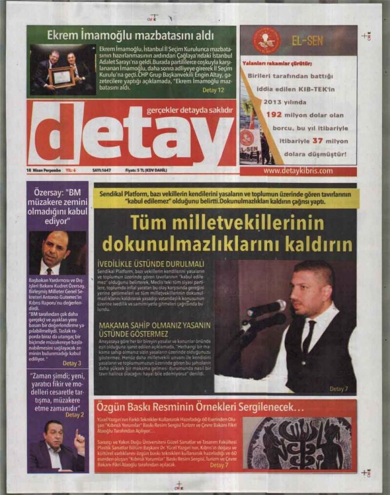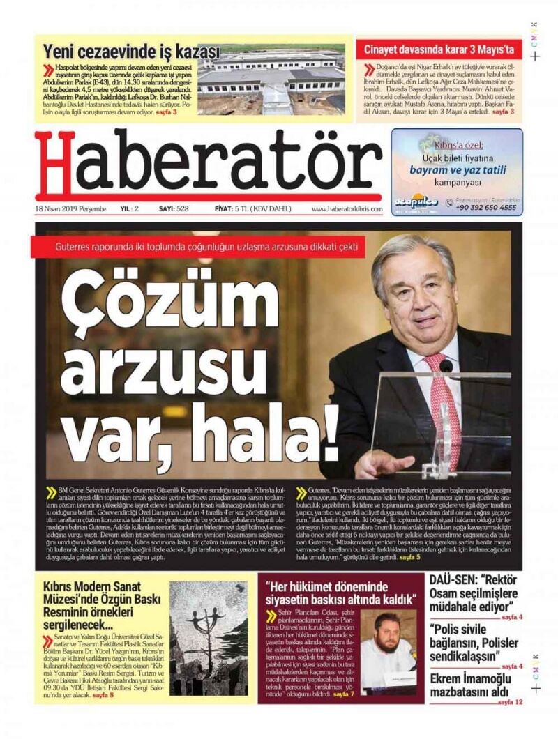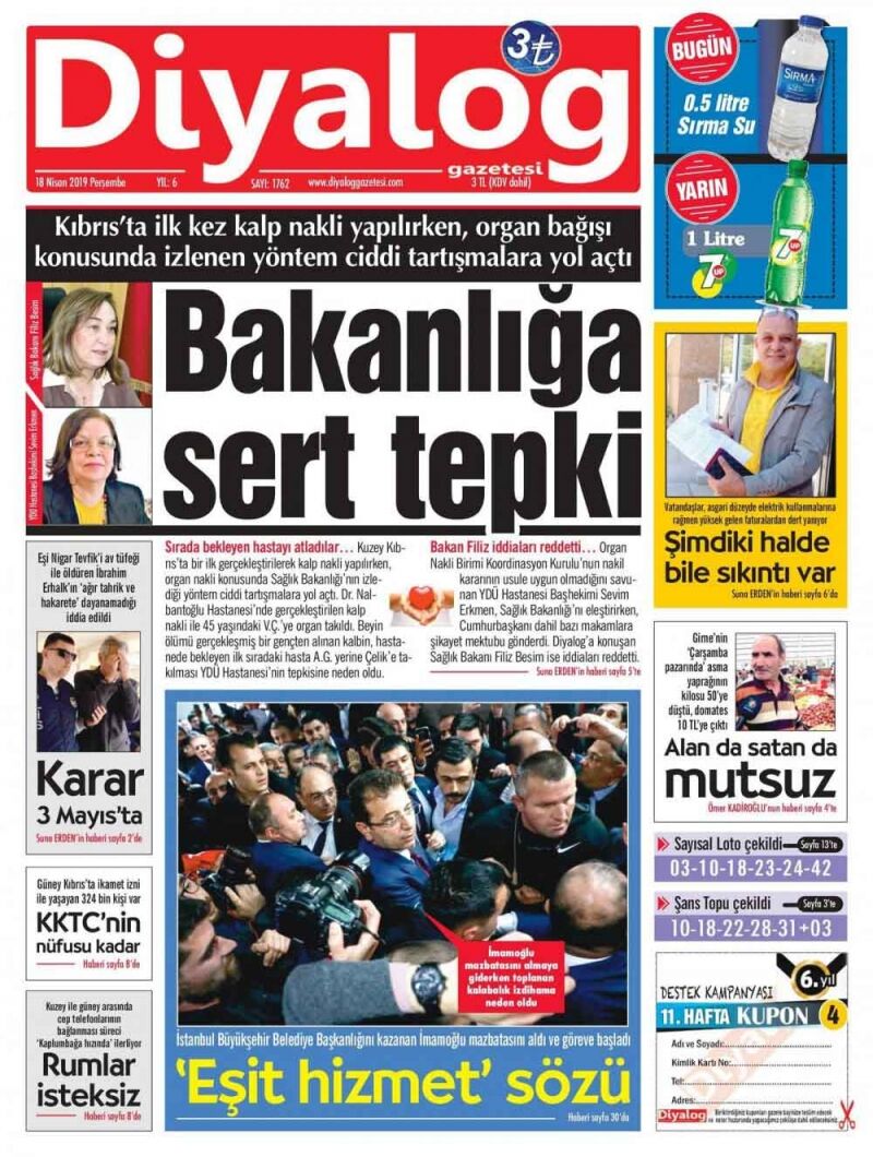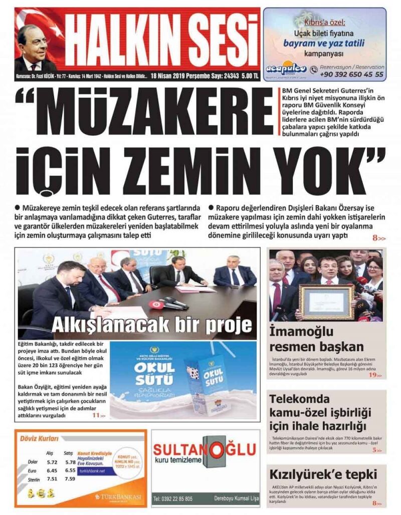 18 Nisan 2019 Perşembe Gazete Manşetleri