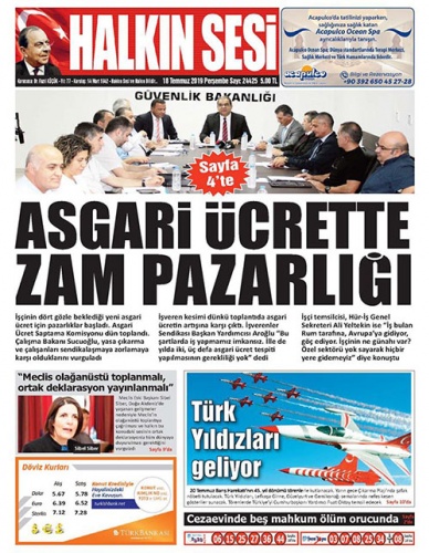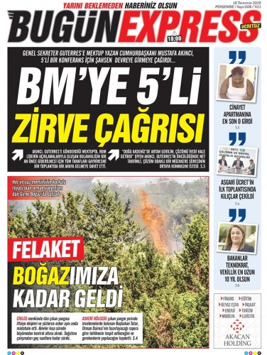 18 Temmuz 2019 Perşembe Gazete Manşetleri