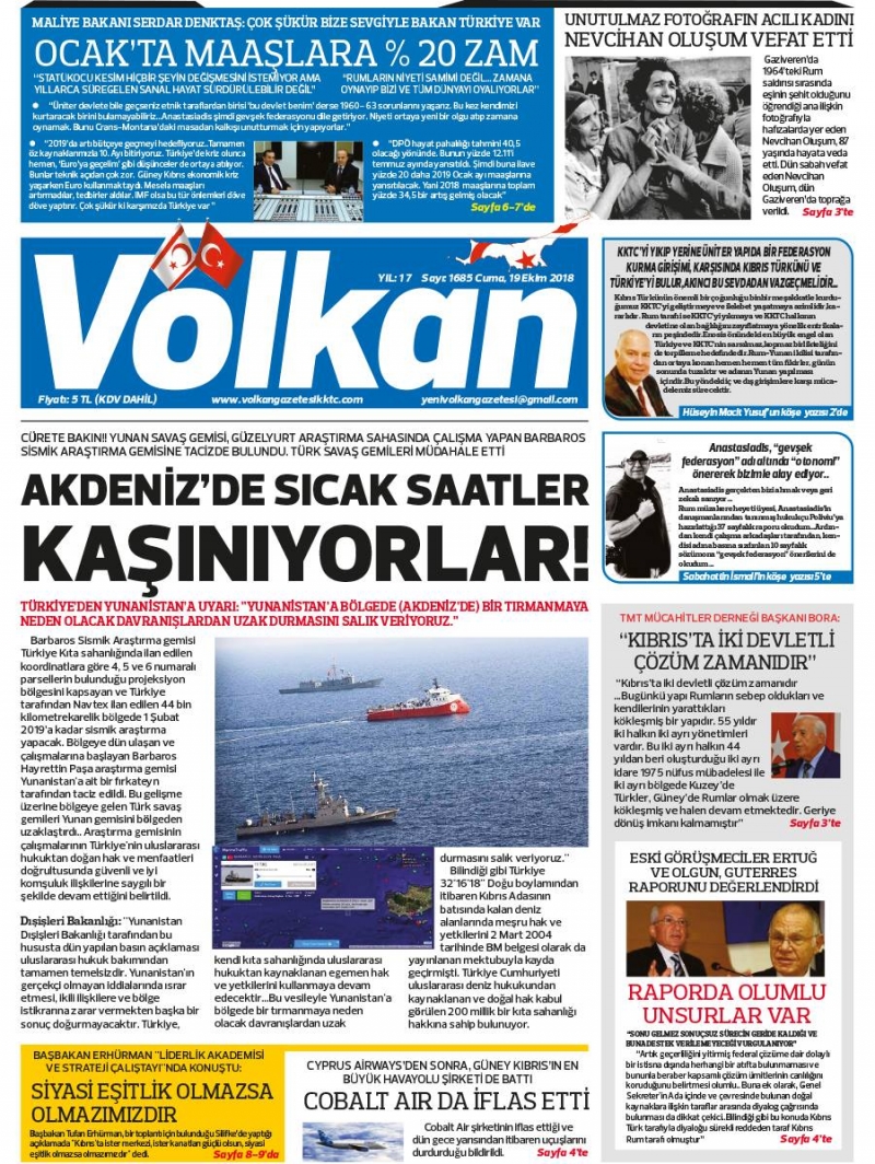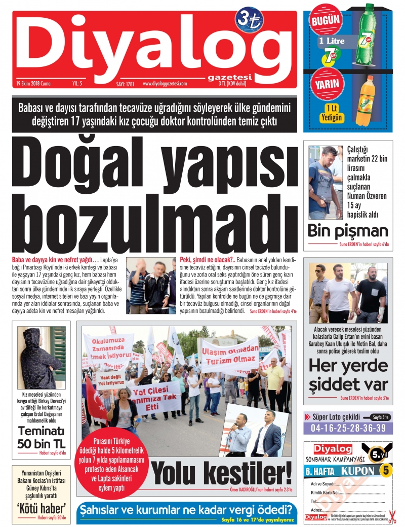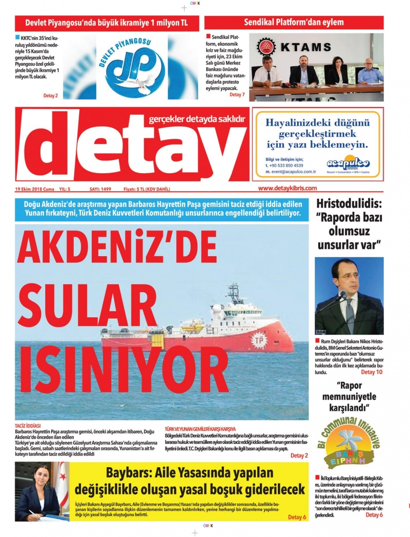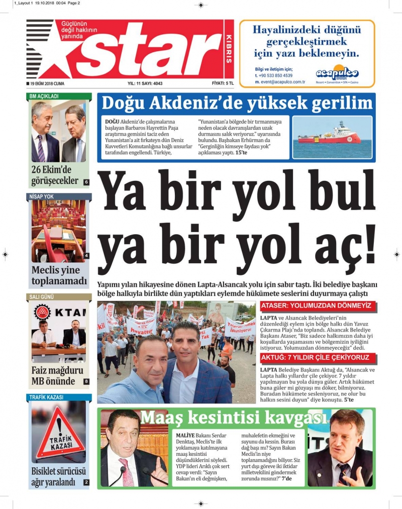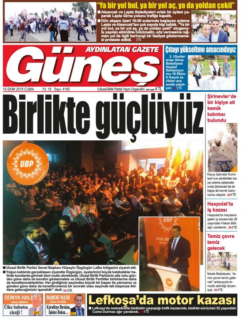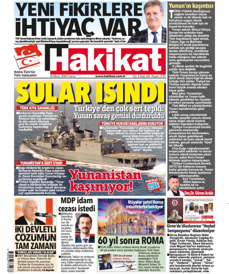 19 Ekim 2018 Cuma Gazete Manşetleri