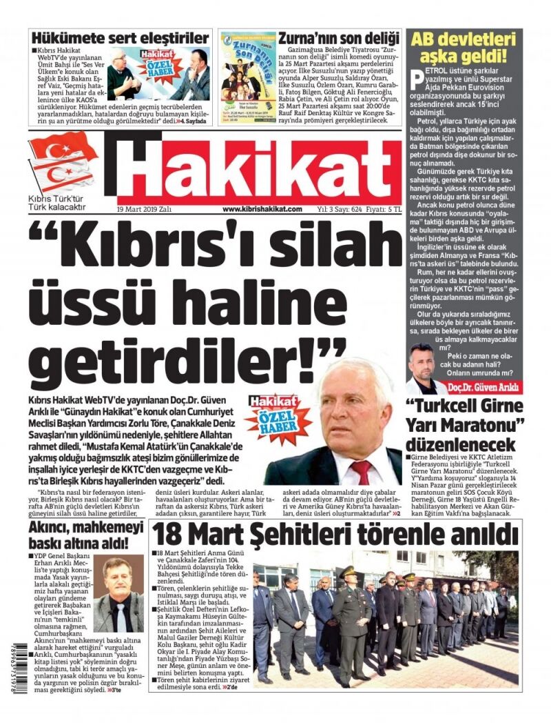 19 Mart 2019 Salı Gazete Manşetleri