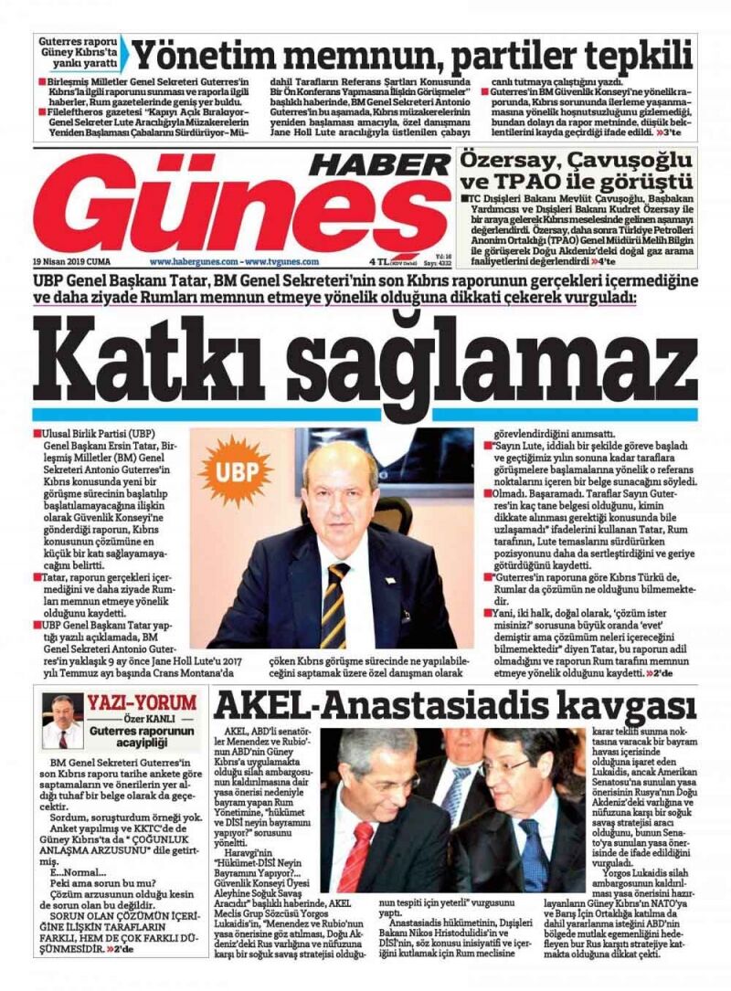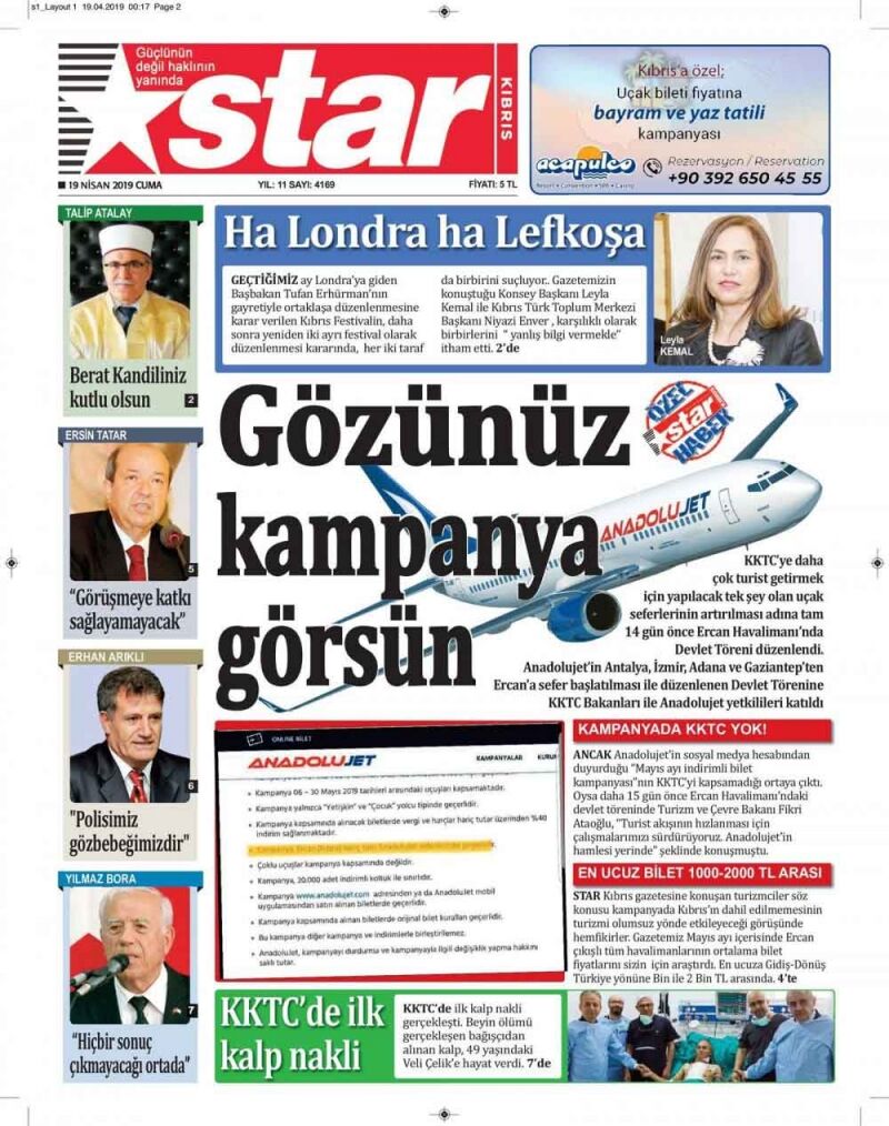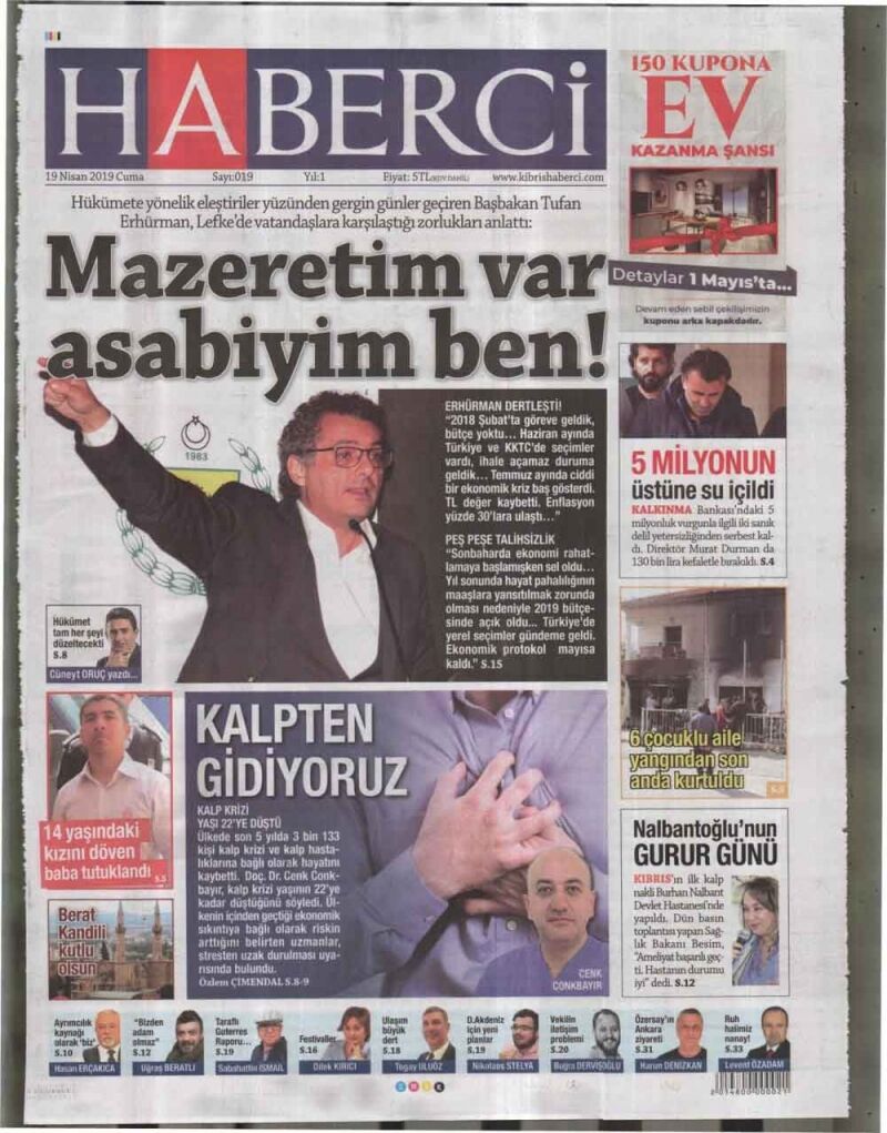 19 Nisan 2019 Cuma Gazete Manşetleri