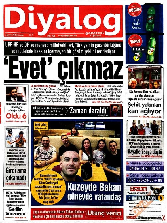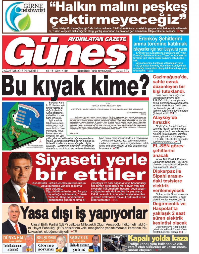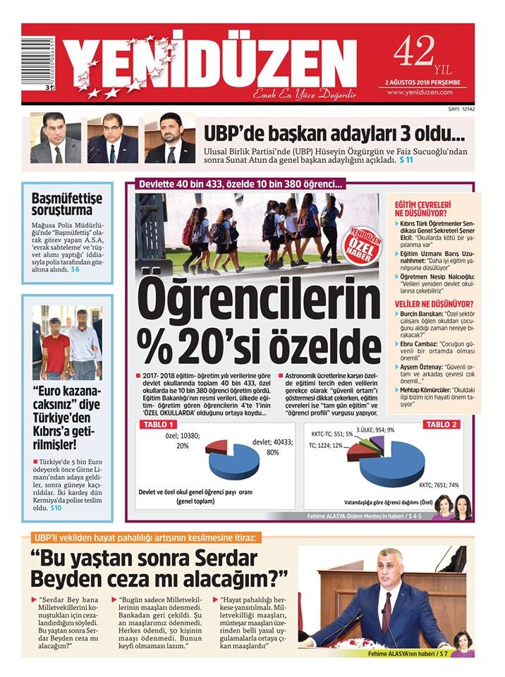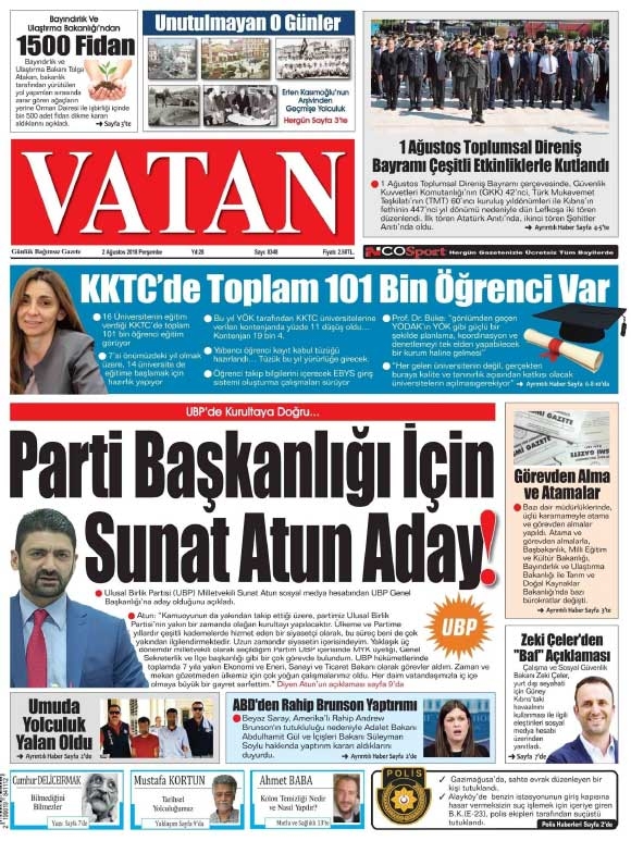 2 Ağustos 2018 Perşembe Gazete Manşetleri