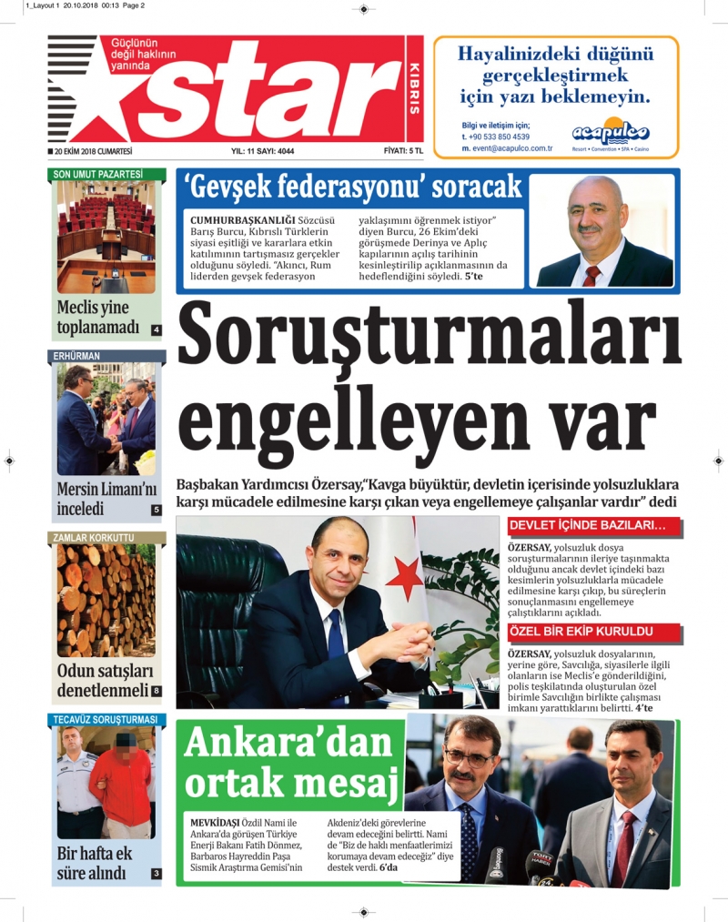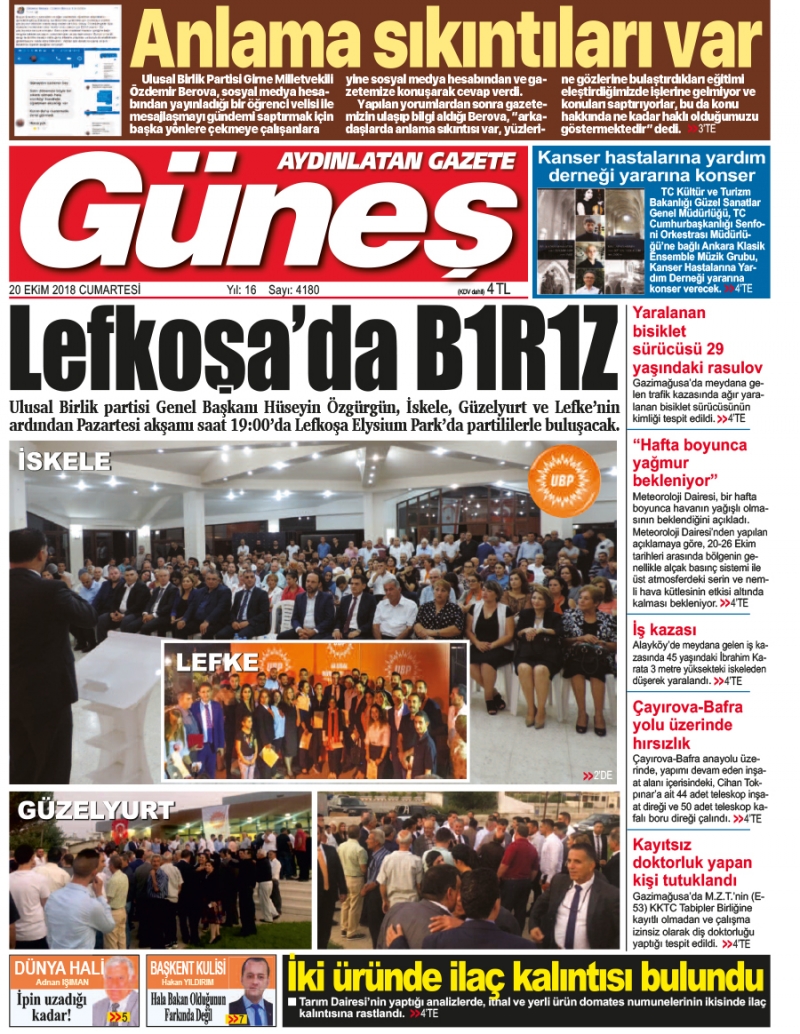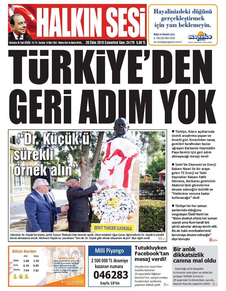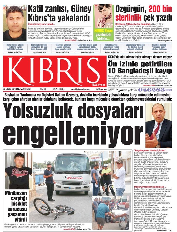 20 Ekim 2018 Cumartesi Gazete Manşetleri