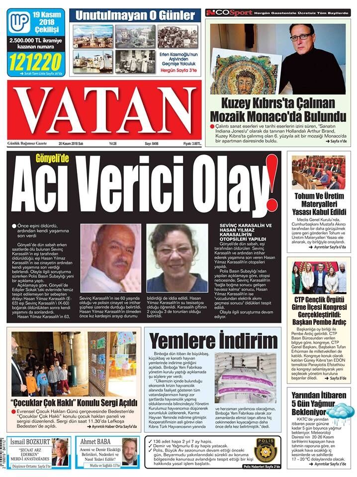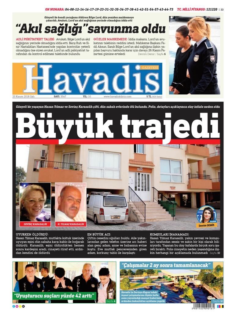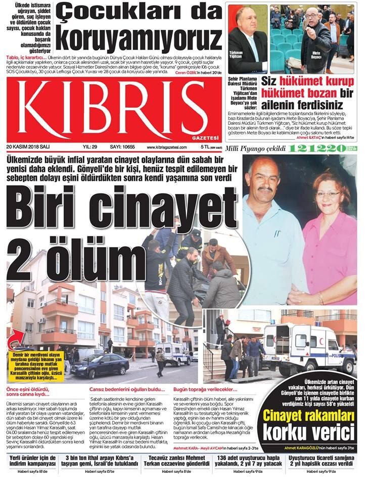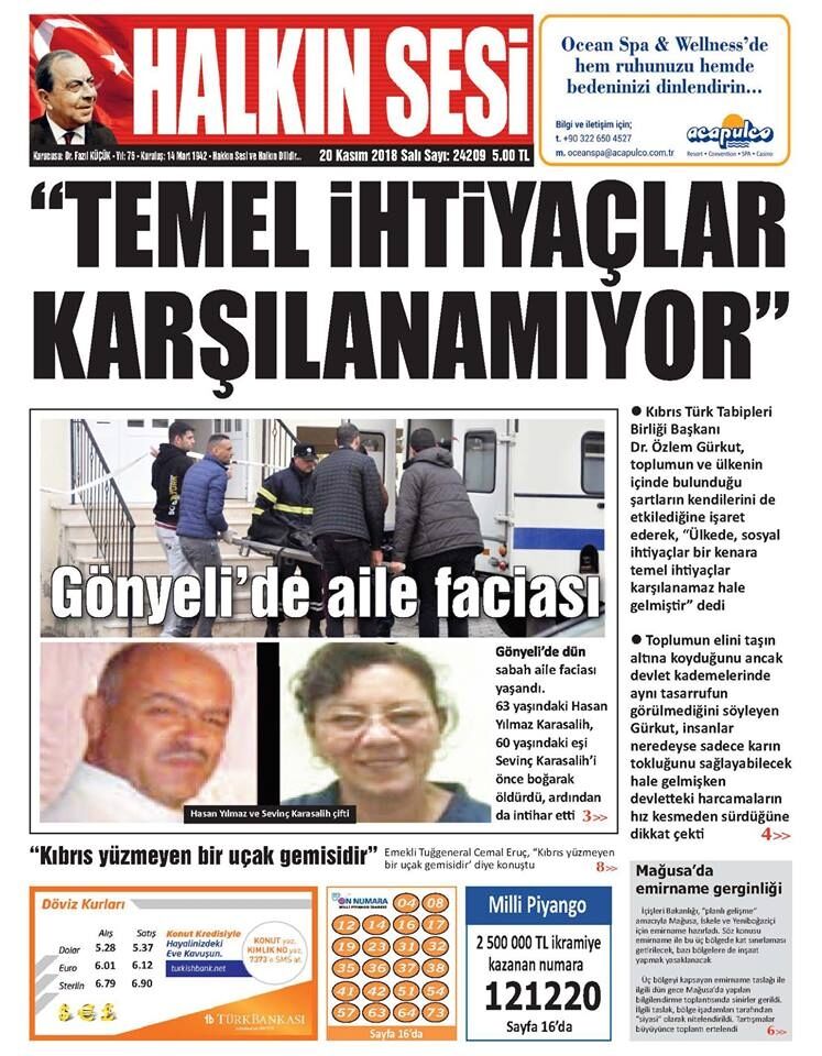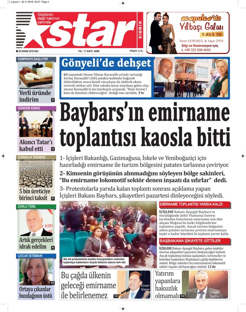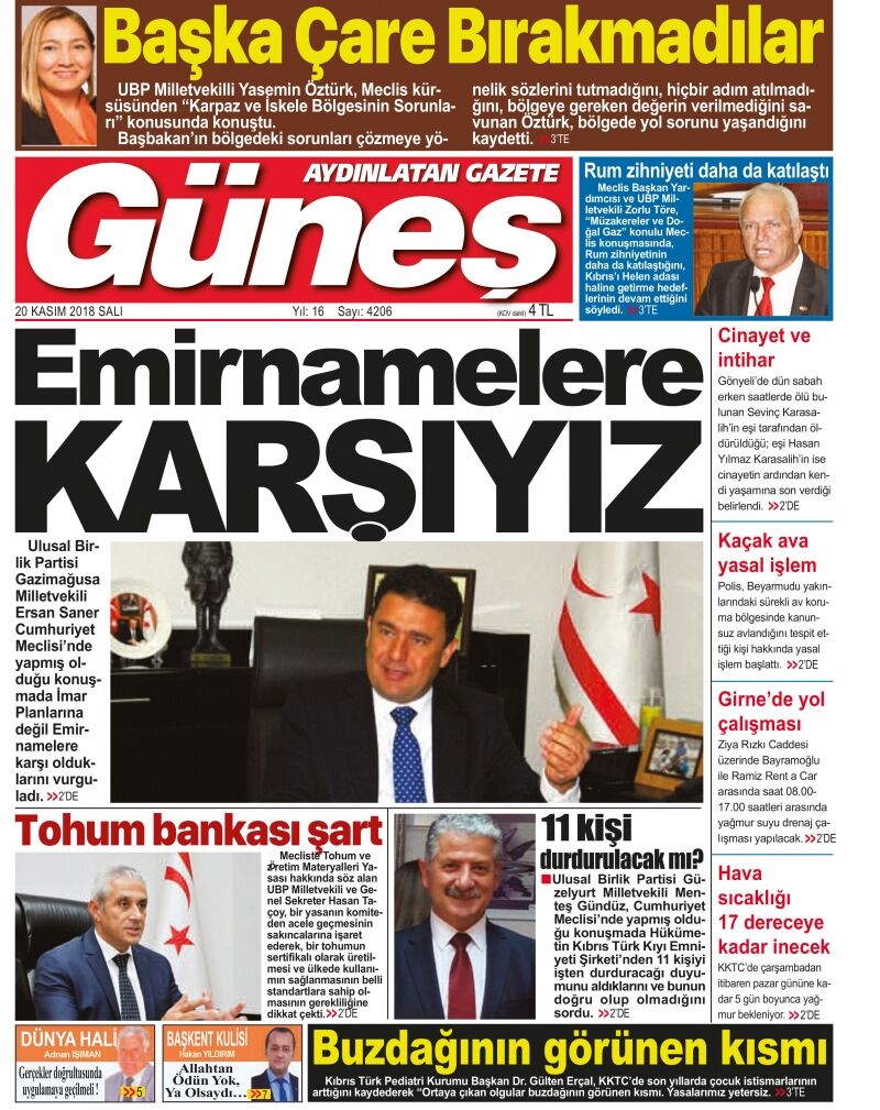 20 Kasım 2018 Salı Gazete Manşetleri