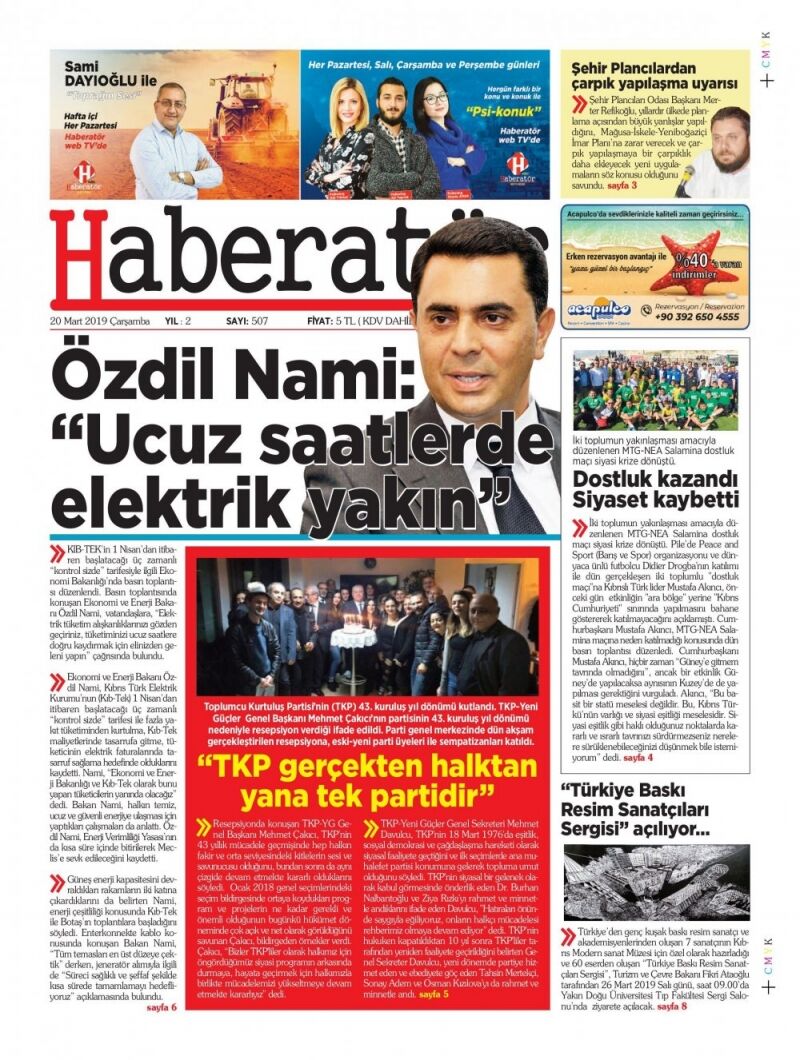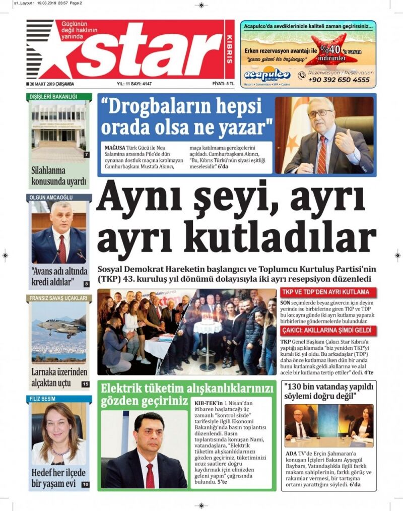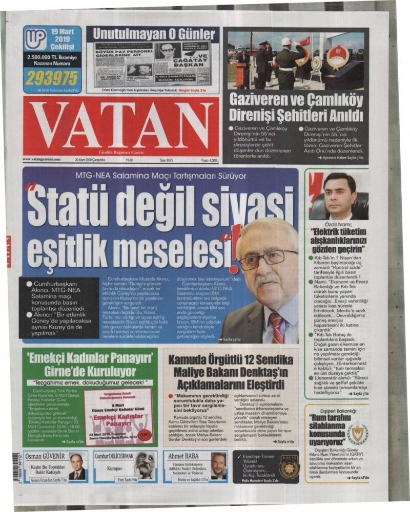 20 Mart 2019 Çarşamba Gazete Manşetleri